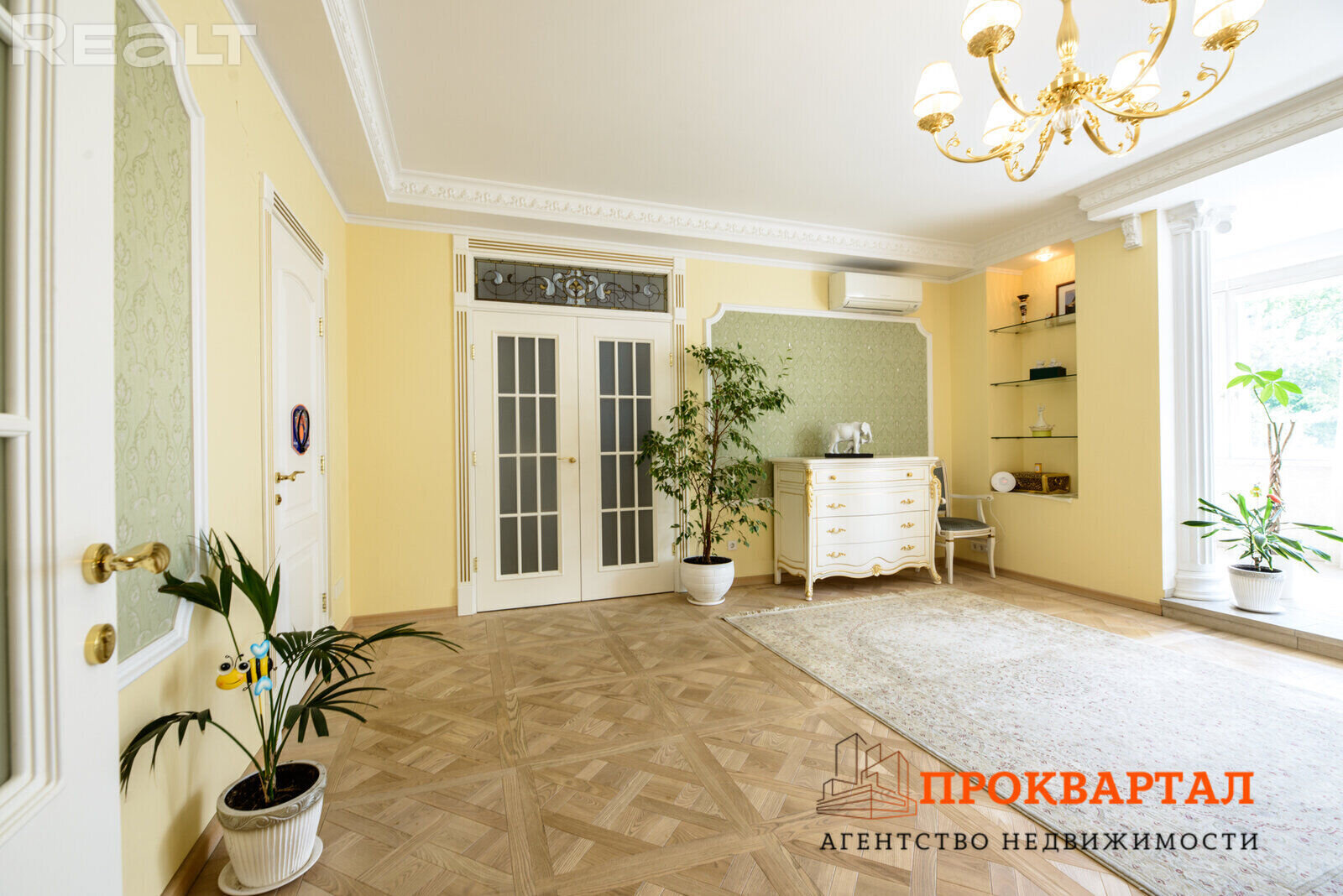 Квартира продается на Броневом переулке, 4 в кирпичном пятиэтажном доме 1967 года постройки. Дом в народе легендарный, так как там в свое время жили 6 бывших председателей Совета министров БССР: Николай Авхимович, Тихон Киселев, Александр Аксенов, Владимир Бровиков, Михаил Ковалев и Вячеслав Кебич, а также имели квартиру первый зампред Совета министров БССР, заместитель председателя Президиума Верховного Совета БССР Владимир Лобанок и председатель Президиума Верховного Совета БССР Сергей Притыцкий. Кстати, именно ему и принадлежала эта квартира.