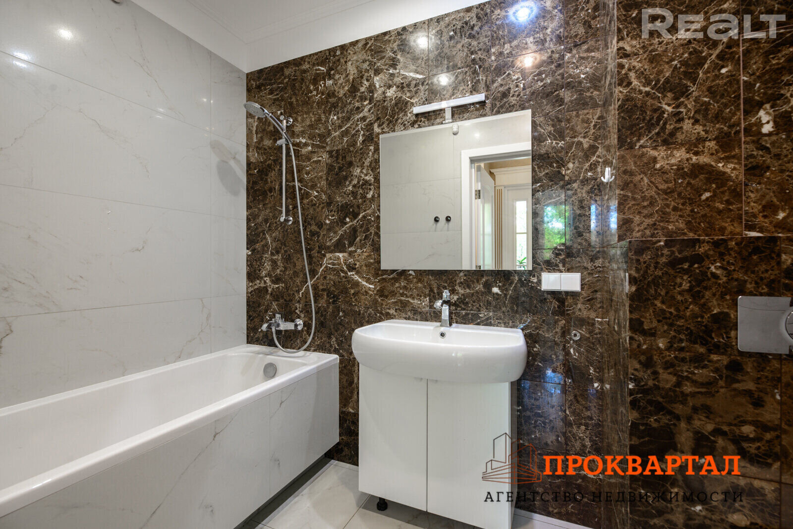 В квартире два санузла. Тот, что прилегает к спальне, имеет душевую кабину, туалет и биде. Во втором установлена ванна.