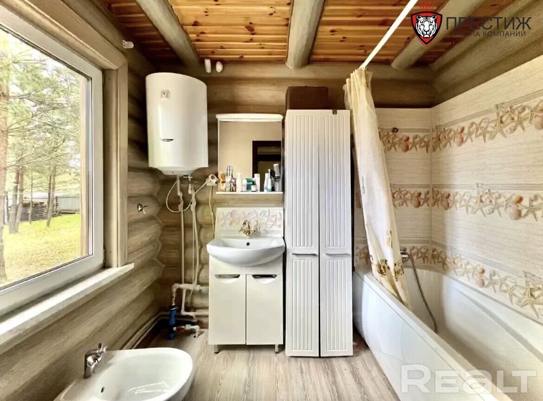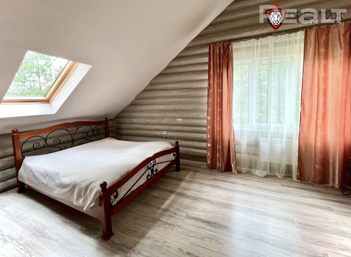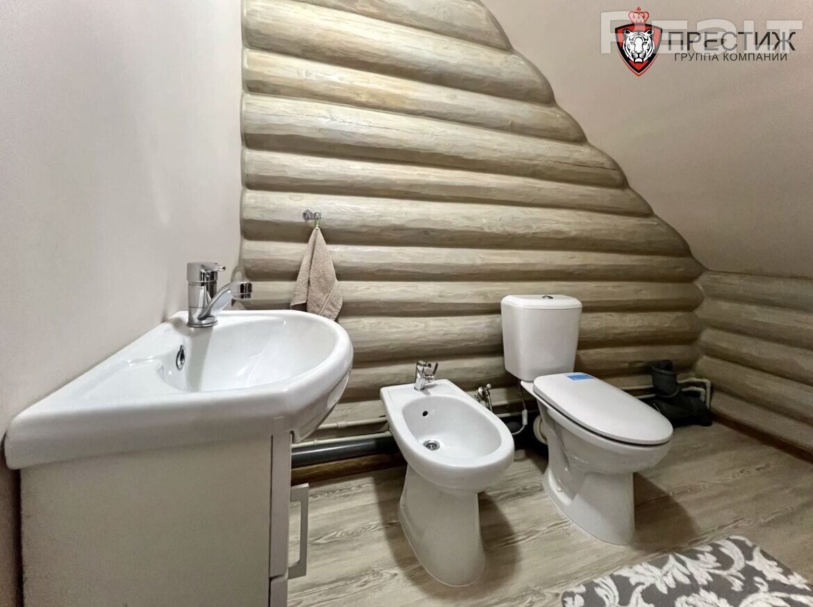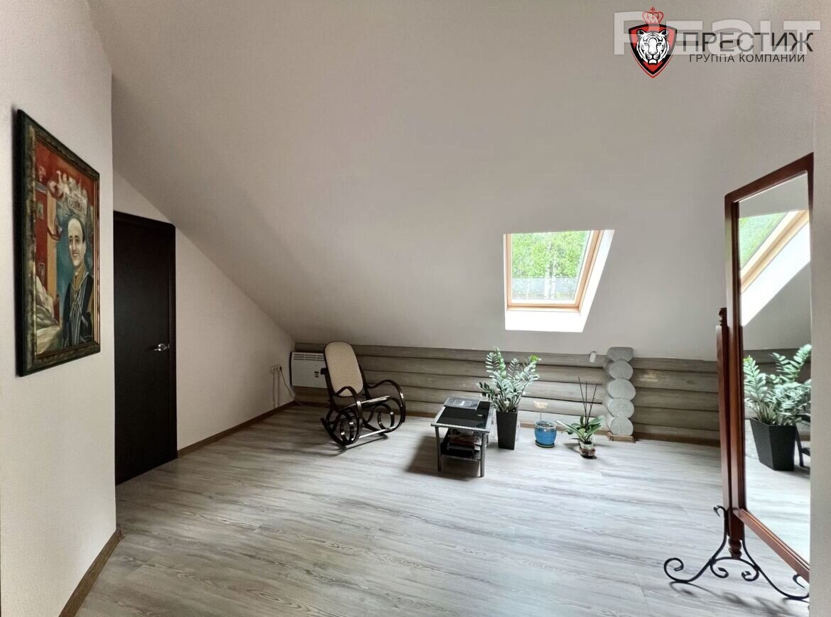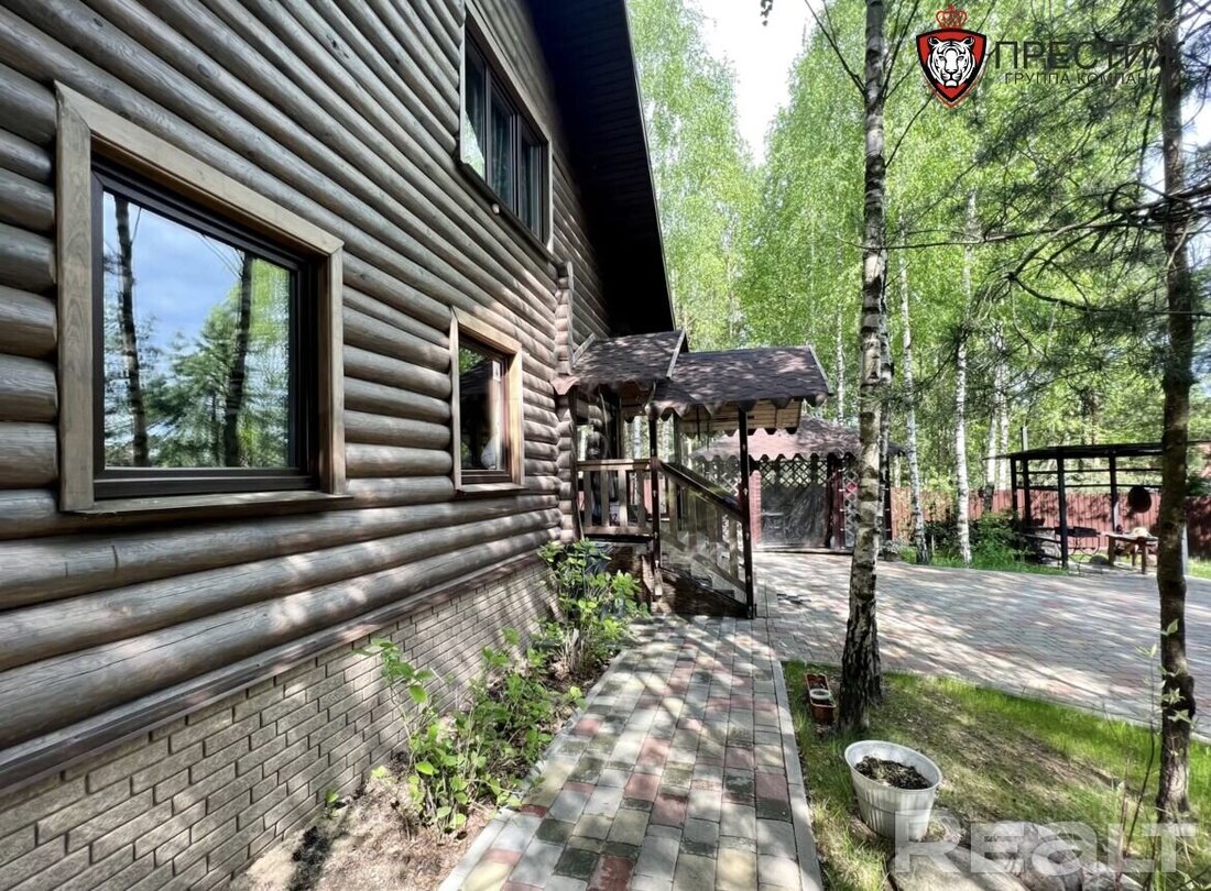 Здесь продается современный двухэтажный бревенчатый дом (оцилиндрованное бревно). Он новый, 2021 года постройки. Общая площадь — 120 м2.