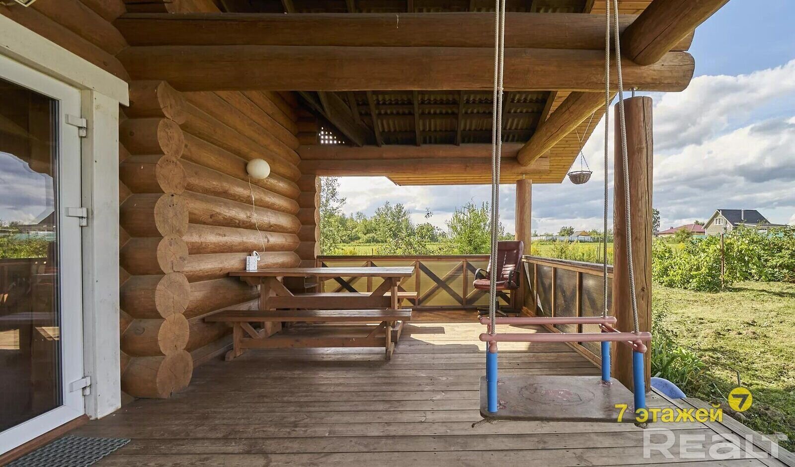 Этот деревянный дом можно использовать как агроусадьбу — так он и был оформлен изначально, под названием «От заката до рассвета». Но можно и просто жить в нем. Общая площадь — почти 80 м2 плюс 33 «квадрата» террас. Второй этаж можно дополнительно обустроить под жилую комнату.
