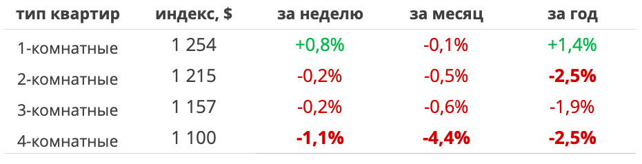 За последние семь дней число объявлений выросло во всех сегментах. Заметнее остальных у 4-комнатных — +2%. Число «двушек» и «трешек» увеличилось на 1%, 1-комнатных квартир — на 0,5%.