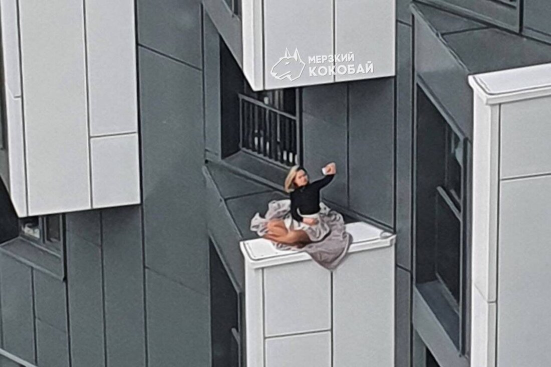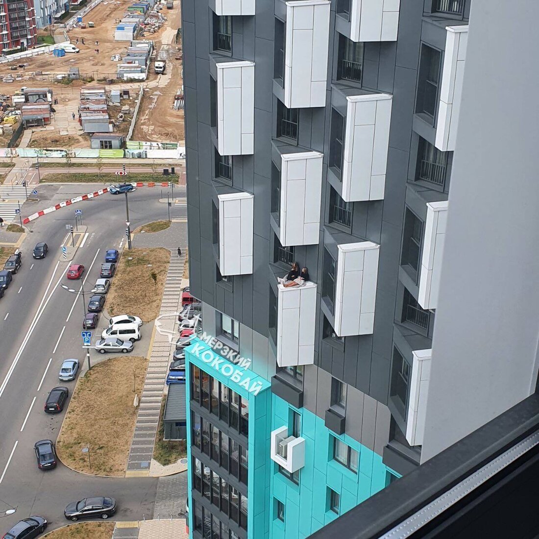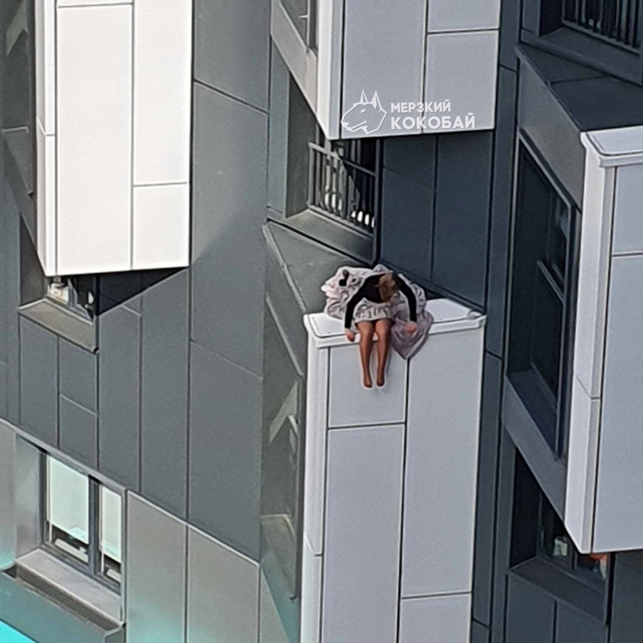 В телеграм-канале «Мерзкий Кокобай» появились фото, на которых две девушки делают селфи прямо на крыше лоджии. Судя по снимкам, это как минимум шестой этаж.