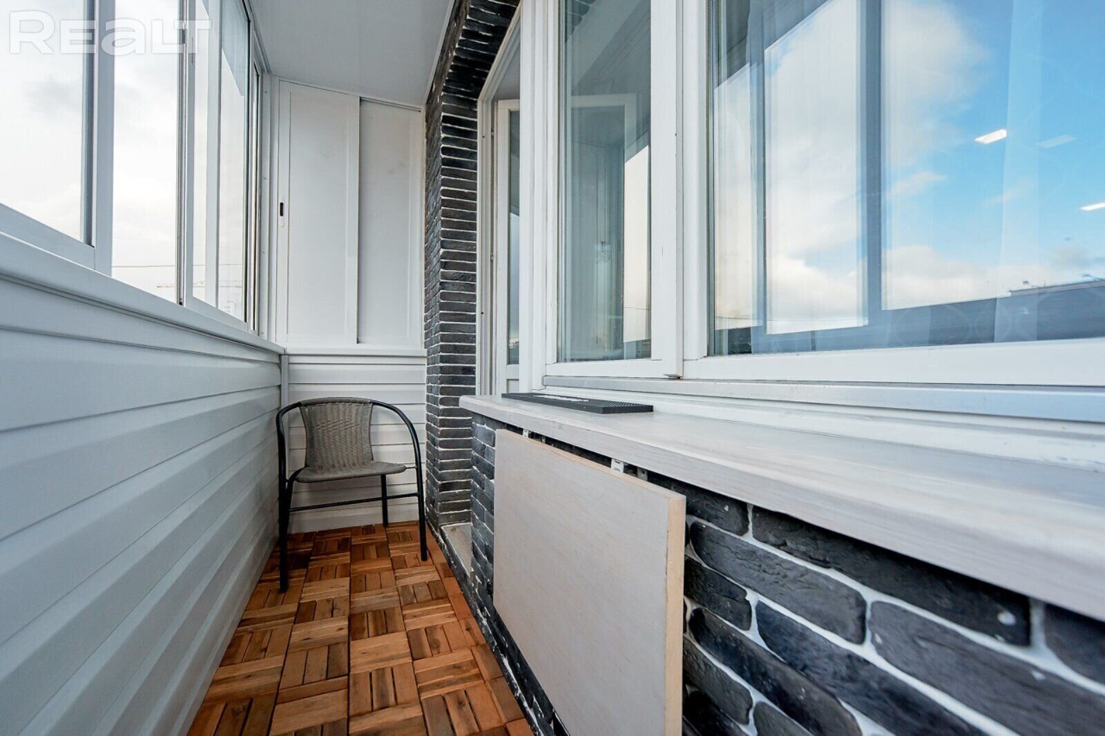 Есть застекленная лоджия, на которой сделан откидной столик.