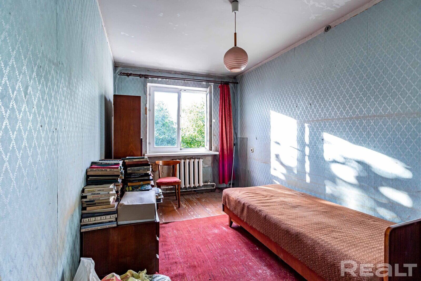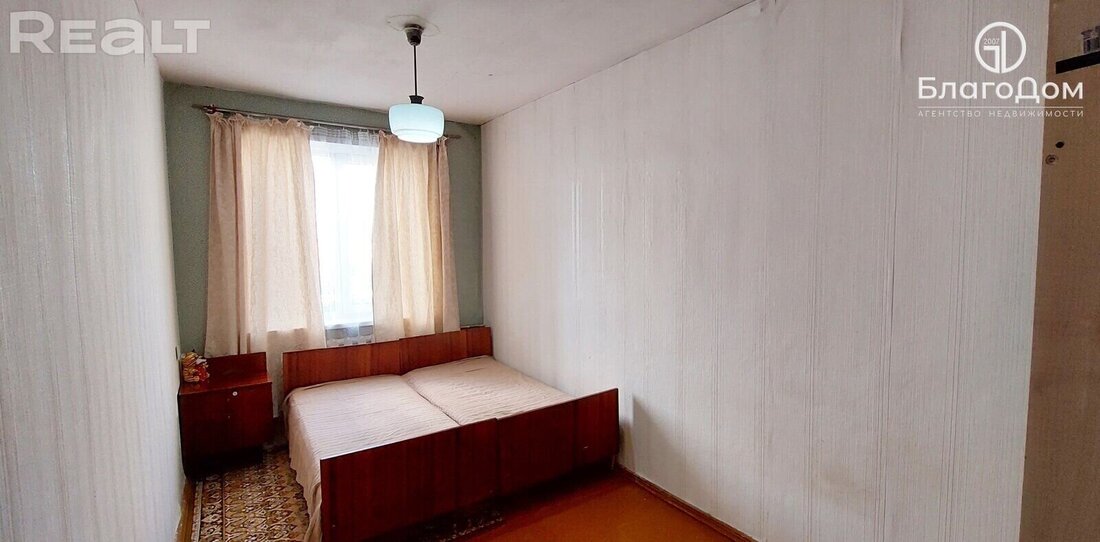 В квартире одна из комнат является проходной, санузел - совмещенный. Двушке не помешает ремонт. Здесь вставлены стеклопакеты, полы деревянные. В квартире нет балкона, но закреплено место в подвале. Владельцы оставляют в дар покупателю и мебель.