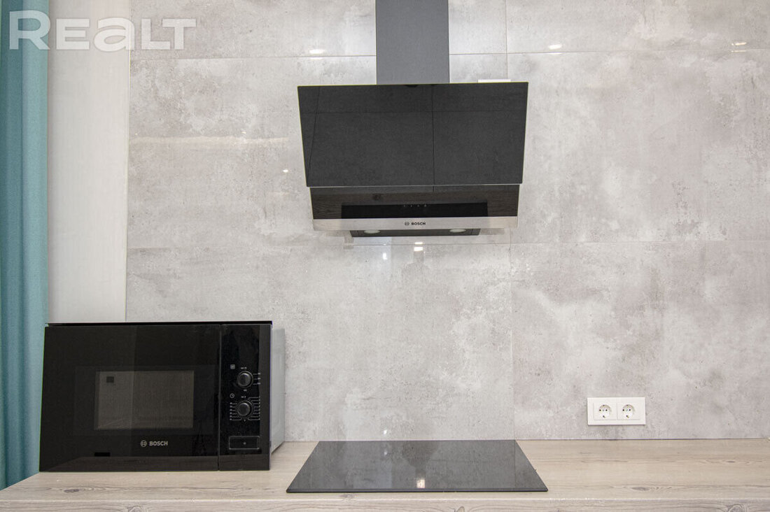 Дом обставлен новой мебелью и укомплектован бытовой техникой: индукционная плита и вытяжка BOSH, холодильник, большой телевизор, стиральная машина, печь СВЧ.
