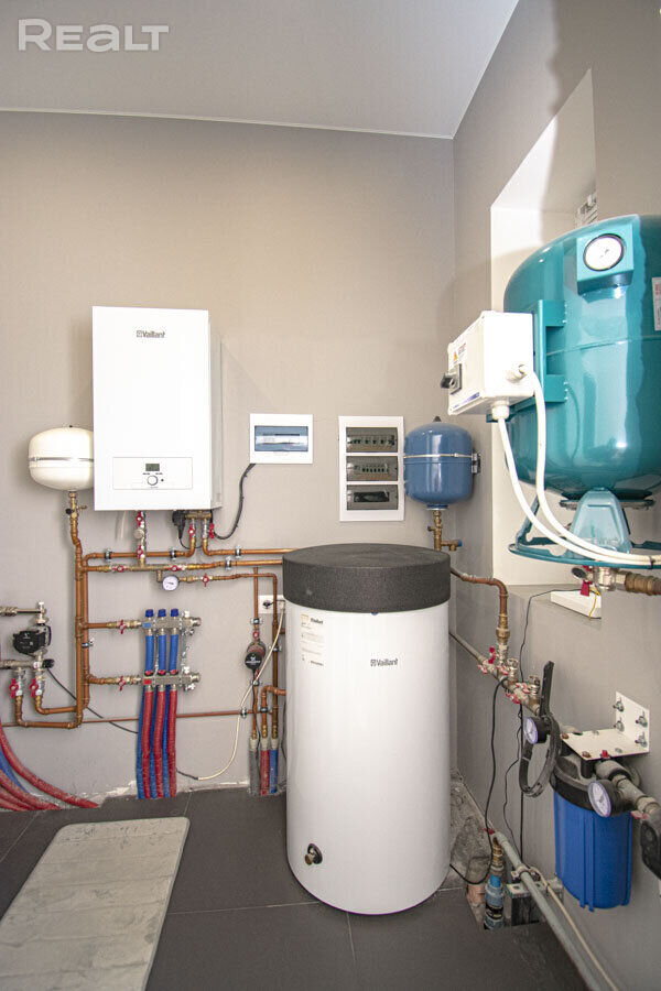 Отапливается дом газом. В котельной стоят котел и бойлер коственного нагрева Vaillant, разводка отопления и котельной качественными брендовыми комплектующими. По всем помещениям разведен теплый пол. К дому подведено оптоволокно, есть резервная антенна 4G.