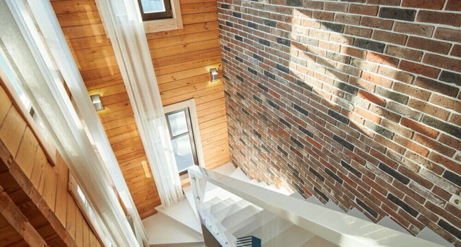 Ни одна зона и комната в доме не выбивается из общего стиля. В интерьере много дерева, есть отсылки к лофту и акцентные белый предметы, которые осветляют пространство.