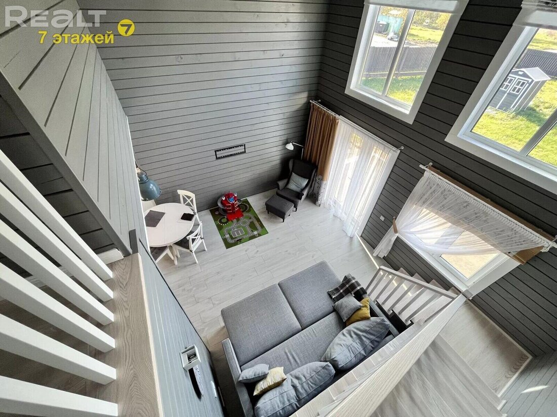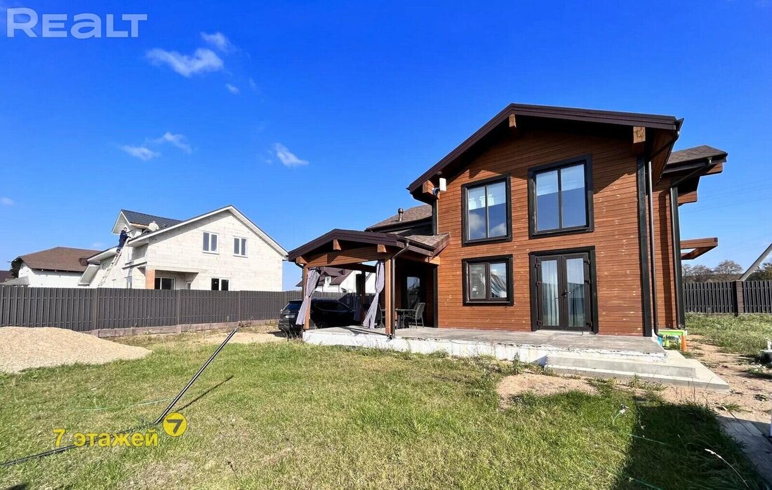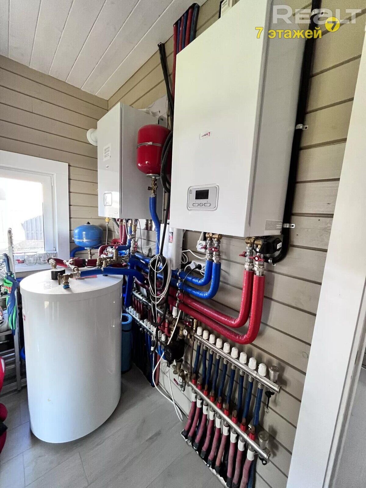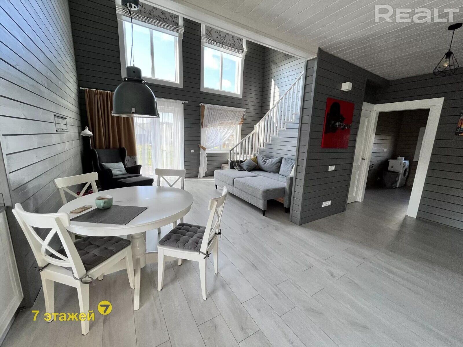 Дом находится в начале коттеджной застройки в самом Логойске. Это значит, что вся городская инфраструктура в шаговой доступности. Добраться до Минска тоже нет проблем — рядом проходит трасса на Витебск. Приятный бонус — близость к спортивным комплексам в Силичах, Раубичах, живописные холмистые леса и река Гайна.