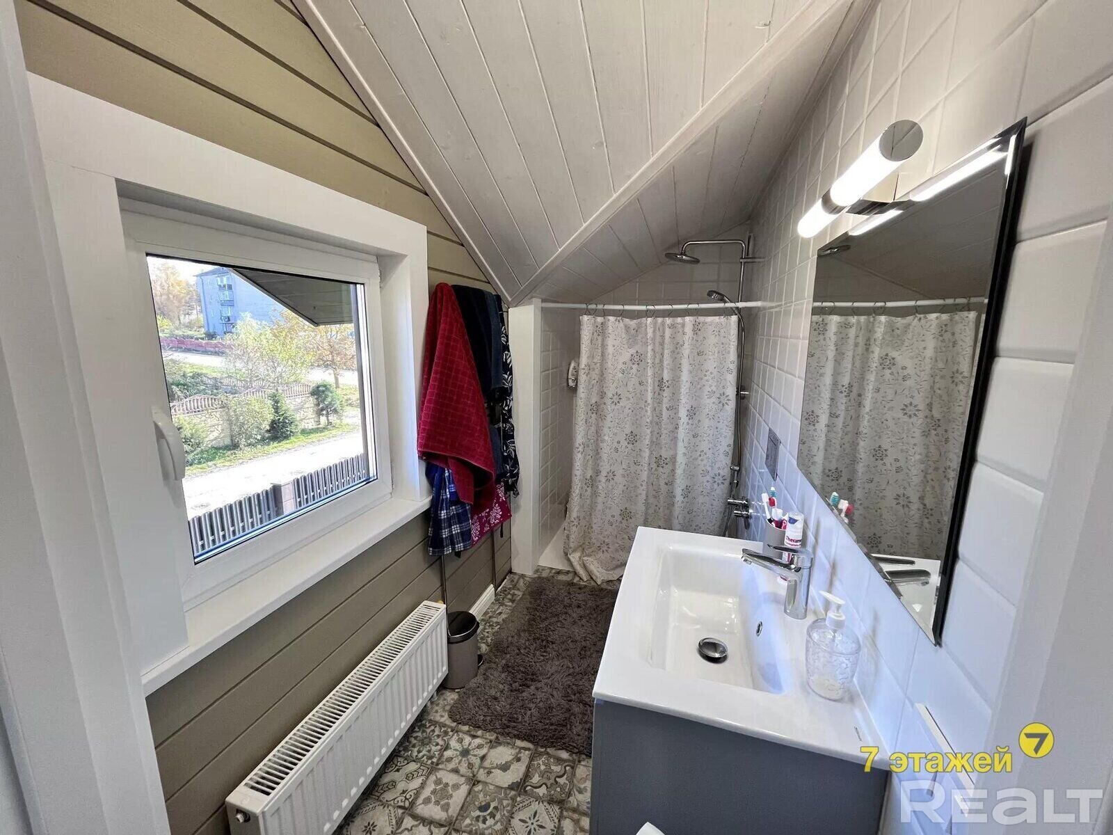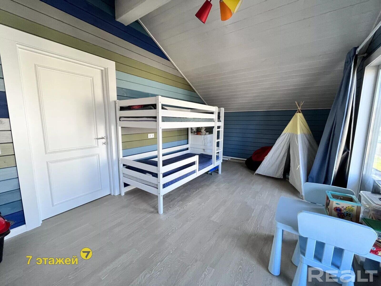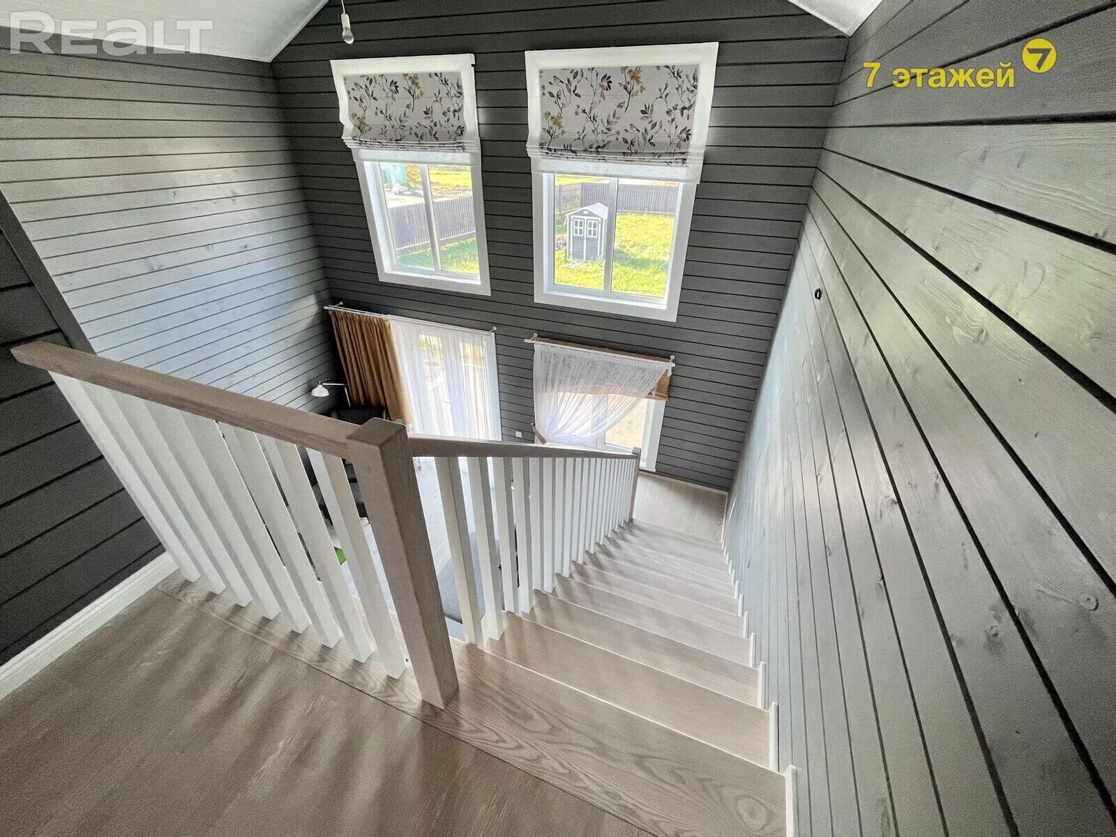 Дом находится в начале коттеджной застройки в самом Логойске. Это значит, что вся городская инфраструктура в шаговой доступности. Добраться до Минска тоже нет проблем — рядом проходит трасса на Витебск. Приятный бонус — близость к спортивным комплексам в Силичах, Раубичах, живописные холмистые леса и река Гайна.