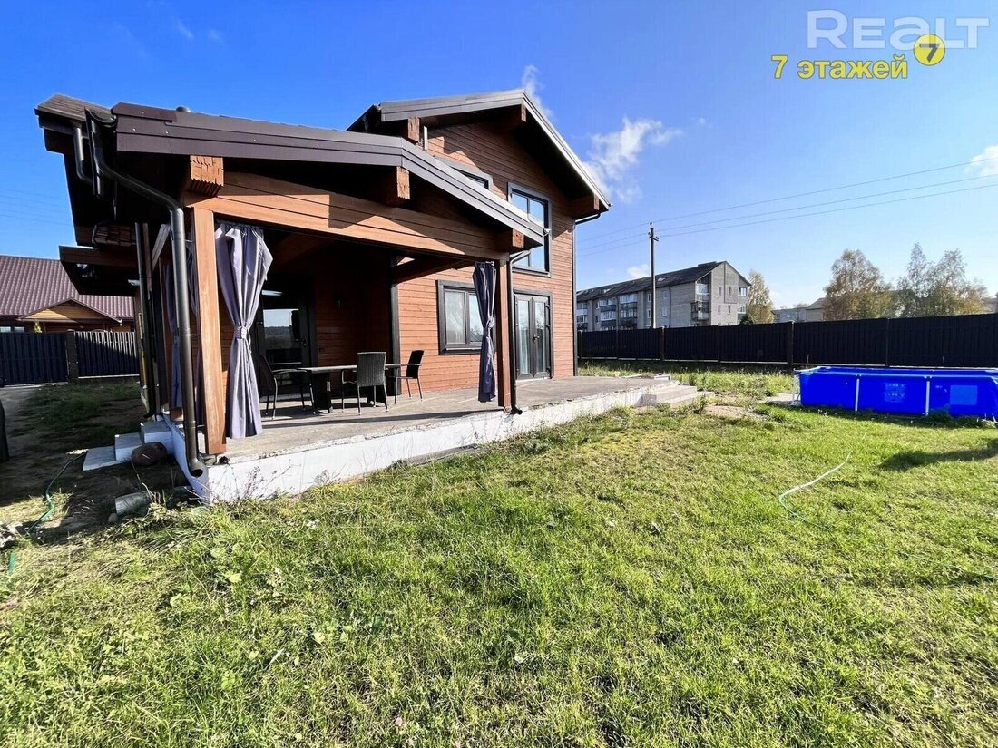 Дом построили не так давно — в 2021 году. Он из профилированного бруса, двухэтажный. Общая площадь — почти 140 «квадратов». Со стороны двора к дому примыкает просторная терраса под общей крышей с битумной черепицей.