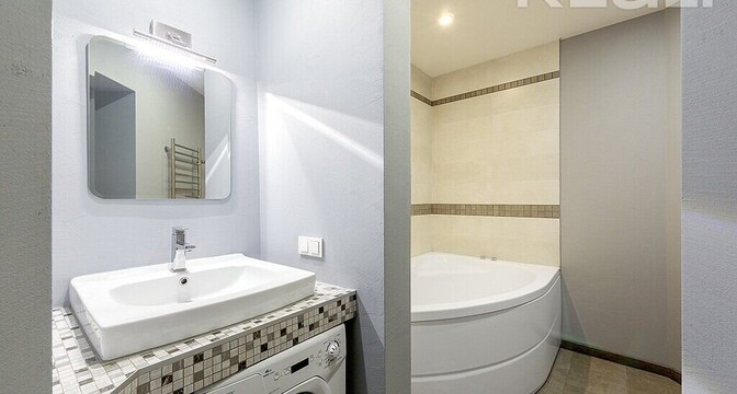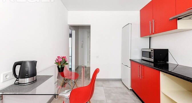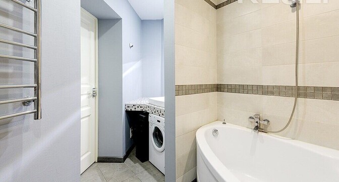 Квартира готова к переезду сразу после покупки. В ней остаются мебель и бытовая техника: холодильник, варочная панель, вытяжка, микроволновка, стиральная машина, телевизор, джакузи и др. На полу лежит ламинат и плитка. В зоне лоджии сделан пол с подогревом.