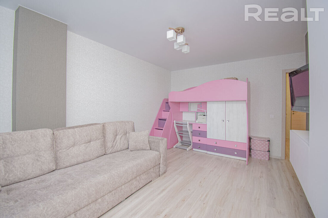 Дом в 13 этажей был построен на Логойском тракте, 7 в 2000 году. На 10 этаже продается квартира в 38 "квадратов". Кухня - 7,9 м².
