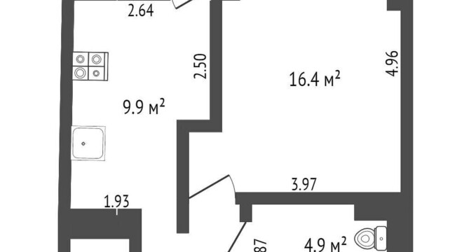 Однушка находится в доме 2017 года постройки на Лосика, 31. Квартира располагается на втором этаже 19-этажки. Ее площадь — 39,8 «квадрата», кухня — 9,9 м².