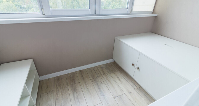Кроме шкафа в коридоре, на лоджии есть тумба и комод, в комнатах - навесная тумбочка под телевизор и большой шкаф-купе.
