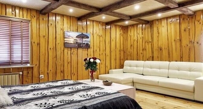 Условия: дом оформлен в стиле шале с обилием дерева и мебели ручной работы. Он состоит из 4-ех уровней. Предлагается 5 комнат отдыха с двуспальными кроватями, современная сантехника и бытовая техника. Из дома оборудован выход на террасу. А также есть 2 банкетных зала с уникальными интерьерами.