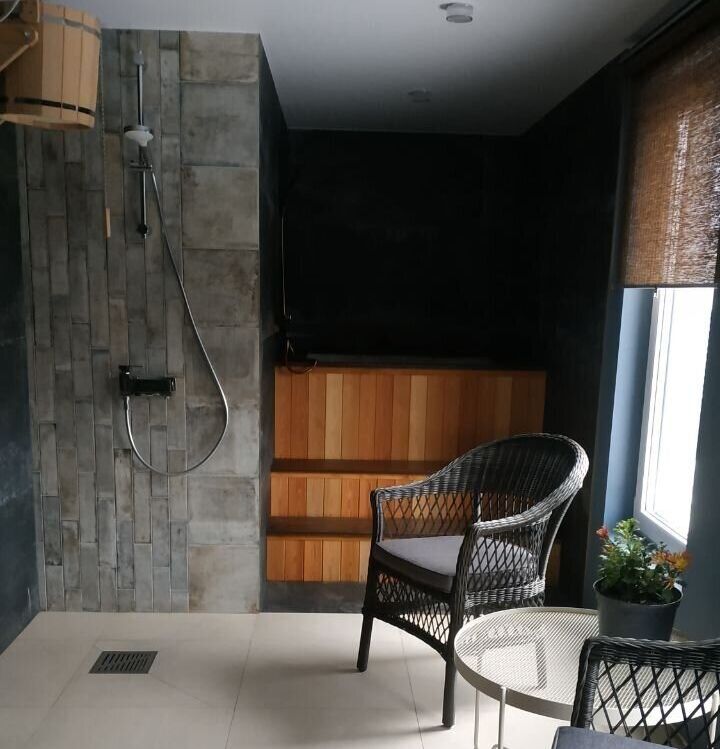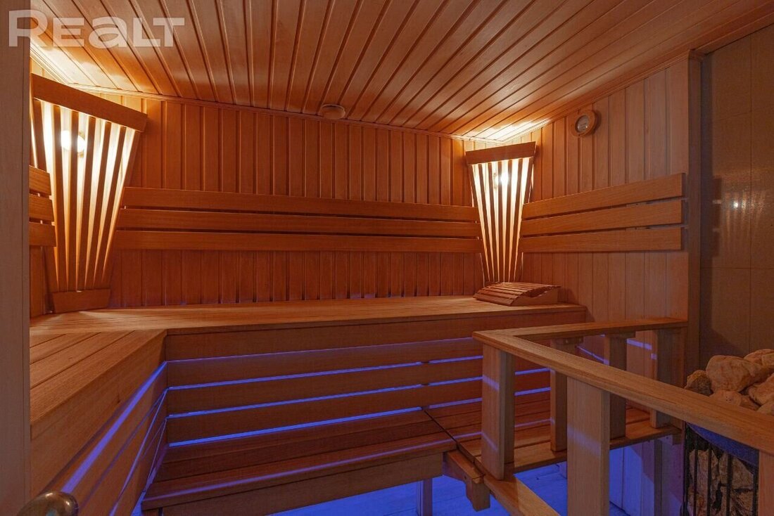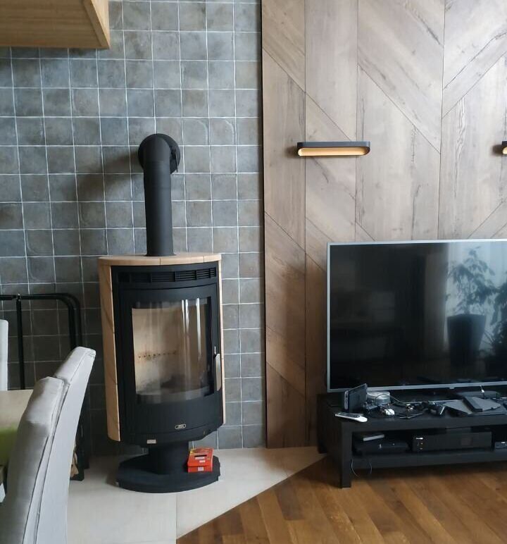 Теплые полы установлены в гостиной, санузле и бане. Отапливается же дом электроконвекторами с малой мощностью потребления и инвенторным кондиционером (работает до минус 30, может выступать как основной источник обогрева). Управление системой отопления возможно через интернет, во всех комнатах стоят регулируемые датчики. Кроме электрообогревателей, в гостиной имеется французский камин на дровах. На случай отключения электроэнергии предусмотрено питание от генератора — автономной станции со щитком на 48 реле, 2 фазы электричества.