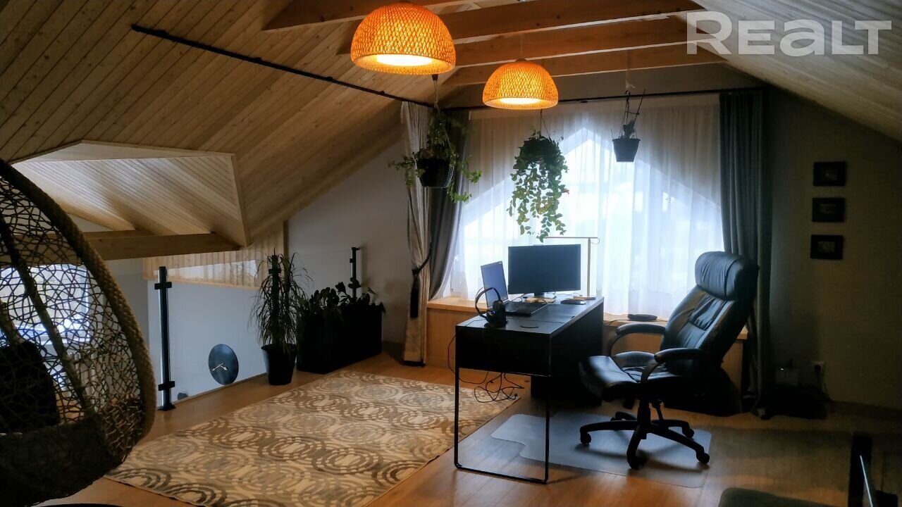Участок небольшой, 5,4 сотки, но ровный, с идеальным газоном и ландшафтным дизайном. На нем расположены сарай, дровник и два парковочных места перед домом.