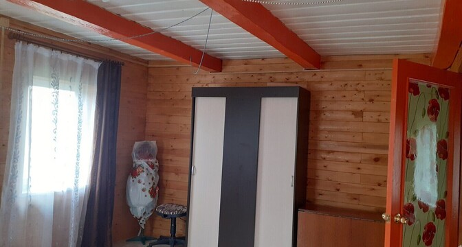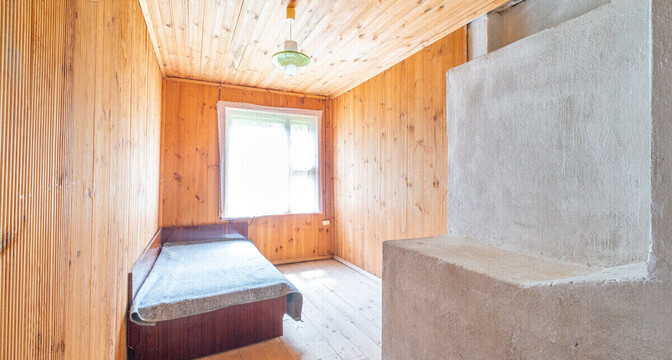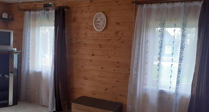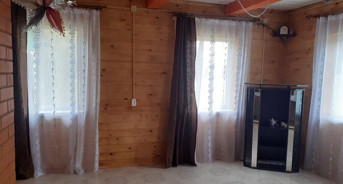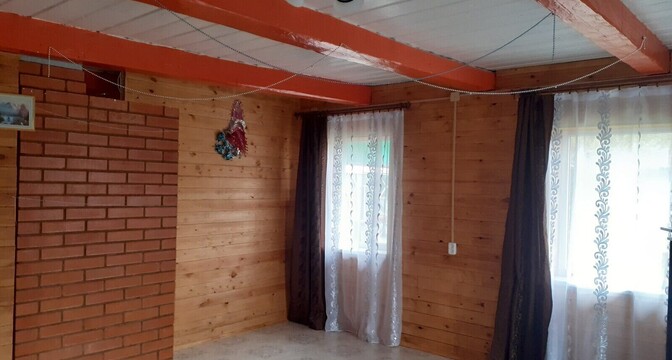 В доме имеются несколько комнат. Там сделан нормальный ремонт: установлена новая печь, на которой можно готовить, стены отделаны имитацией бруса, заменены проводка и окна. Пол тоже обновили — залили стяжку, положили доску и линолеум.
