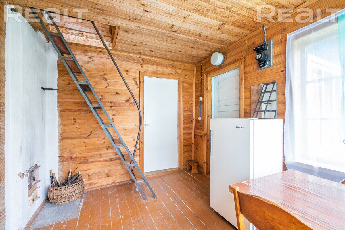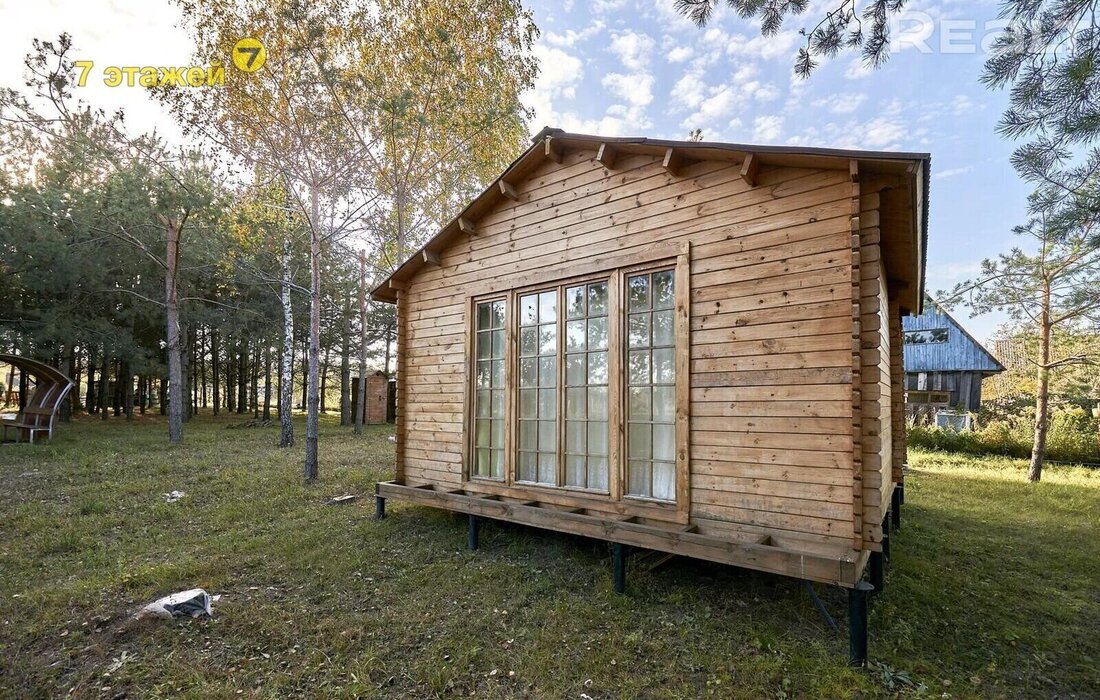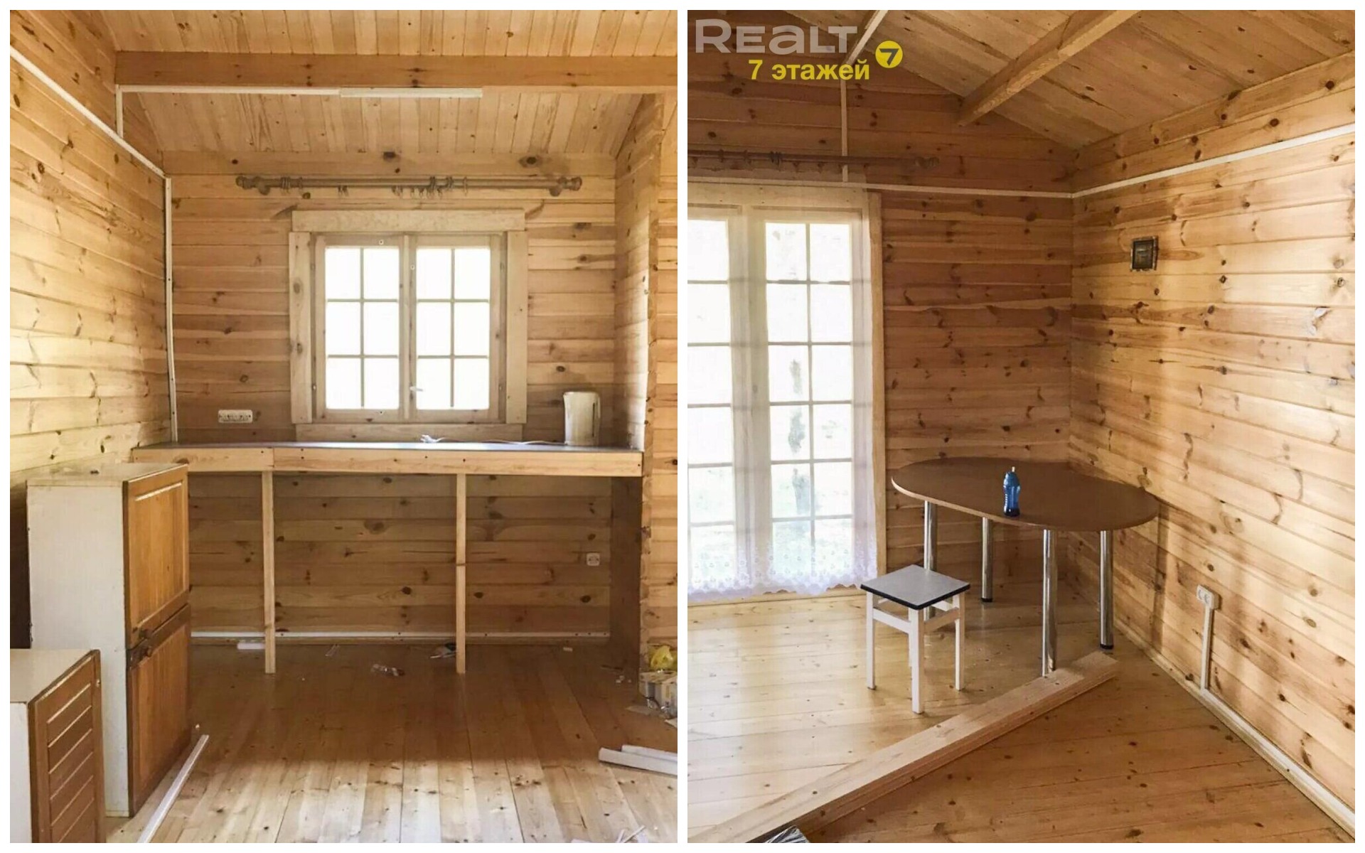 Деревянный садовый дом находится в СТ «Колос КГБ» в Столбцовском районе — примерно в 56 км от МКАД. Его возвели в 2018 году площадью в 32 м².