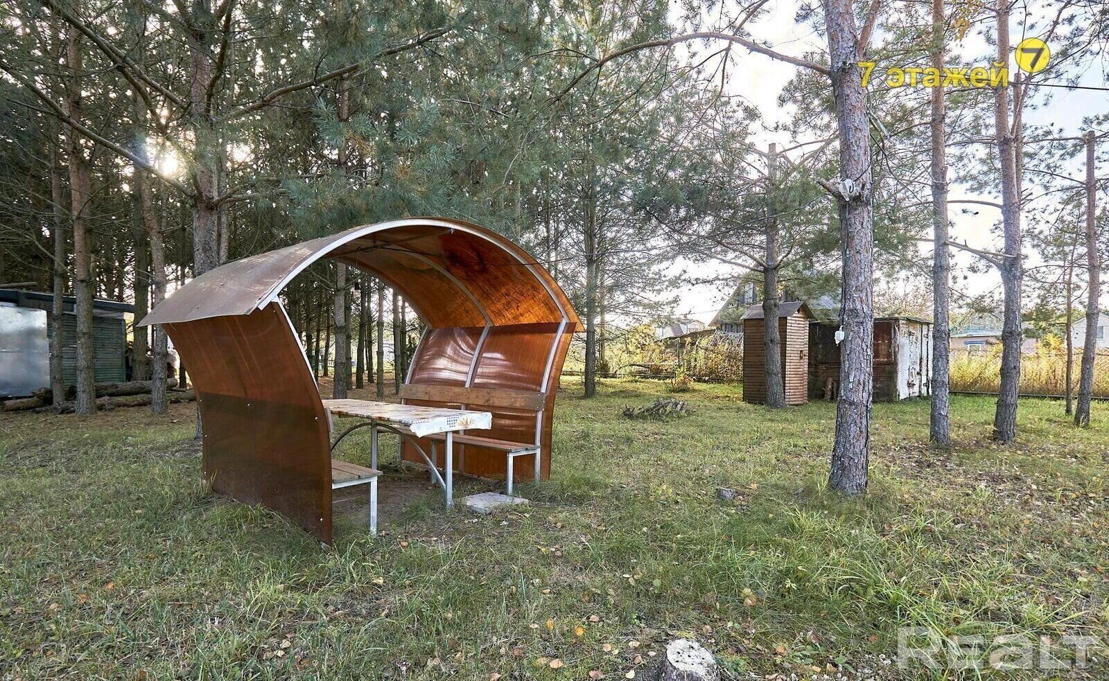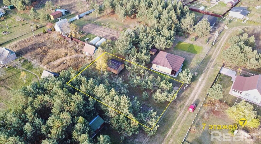 Участок занимает 9 соток и находится в кармашке СТ рядом с лесом. На территории растут яблони и нет огорода.