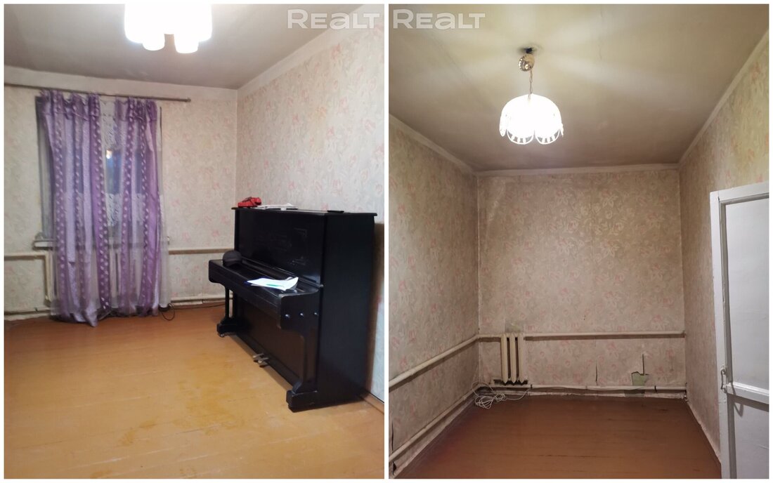 Планировка данной двушки похожа на предыдущие. Здесь есть одна проходная комната, совмещенный санузел и отсутствует балкон. Квартира нуждается в ремонте.