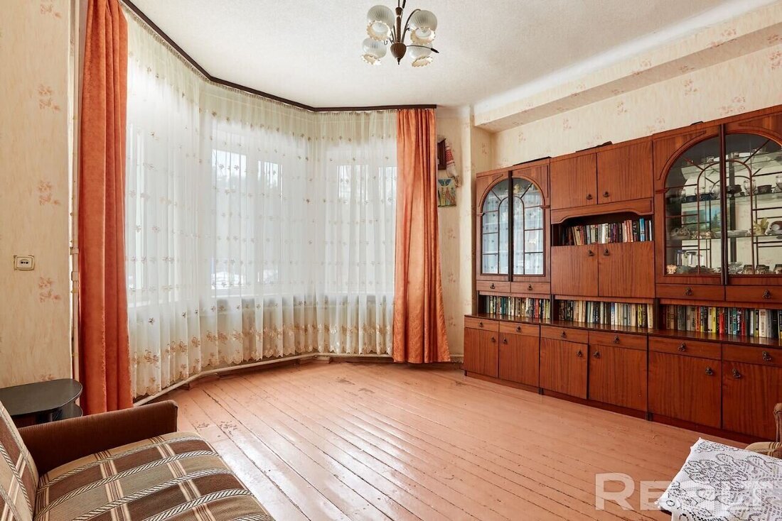 Первая — это трехкомнатная квартира площадью 70 квадратных метров. Находится жилье на первом этаже двухэтажного кирпичного дома. Капитальный ремонт здания был произведен в 2015 году. Высота потолков в квартире − 2,9 метра. Есть погреб. Ремонт — удовлетворительный. Стоимость — 59 тысяч долларов (853 доллара — за метр).