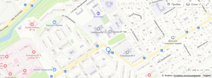 Самая дешевая квартира в базе Realt — однушка на Менделеева, 11. Дом находится в десяти минутах езды от станции метро «Тракторный завод».