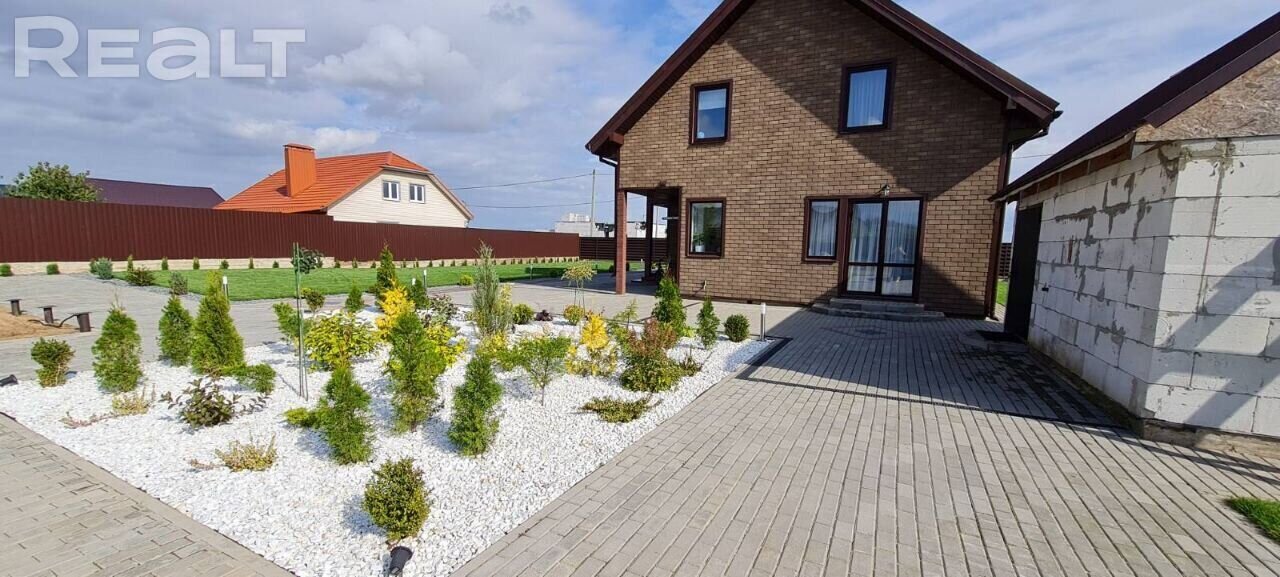 Двухэтажный кирпичный дом в агрогородке Дворище. Здесь есть школа, детский сад, почта, магазины, больница. А до Минска ходят маршрутки и автобусы.
