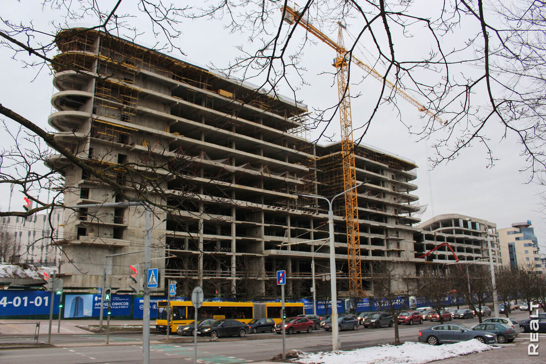 — Не вдаваясь в анализ новой концепции проекта, отметим, что на объекте появились строители; очень оперативно было демонтировано частично установленное ранее витражное остекление, а пролеты — заложены блоками. Объект из долгостроя постепенно превращается в объект, ожидаемый на рынке в ближайшее время (поставлена задача завершить СМР до конца текущего года), — говорят в NAIBelarus.