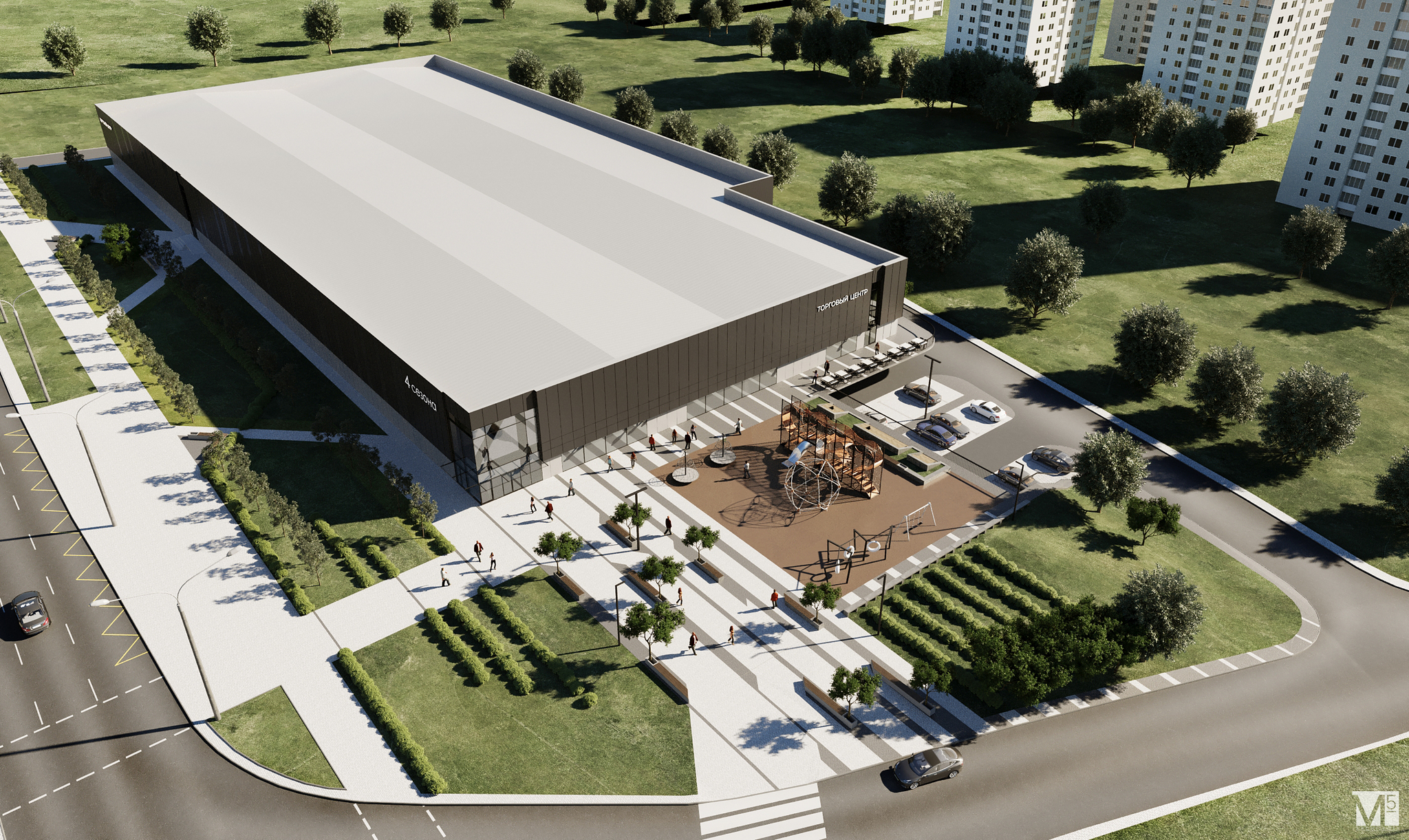 Насыщенность. Площадь вокруг торгового центра будет благоустроена такими зонами как скейтпарк, детская игровая площадка, веревочный городок, и это лишь часть запланированных идей.