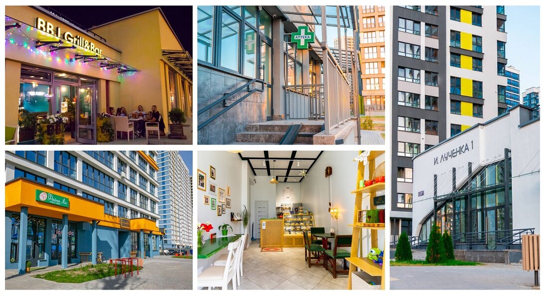 • дизайнерские лобби, где есть зоны отдыха для гостей, стойка консьержа, санитарная комната с пеленальным столиком и лапомойкой, байк-бокс для велосипедов и колясок, букшеринг,