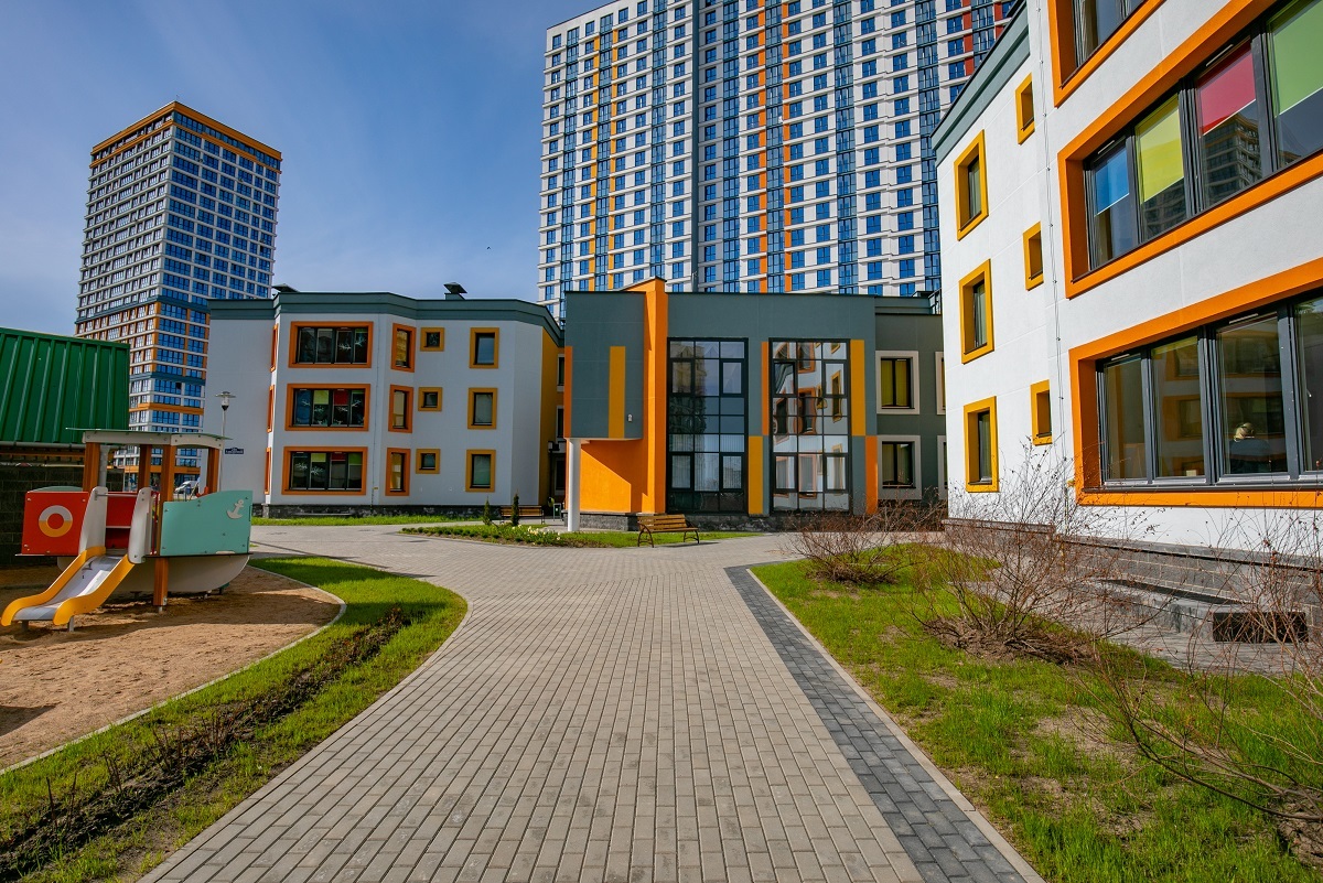 На территории комплекса «Парк Челюскинцев» 2 детских сада — первый расположен прямо в стилобате дома № 1, а второй, рассчитанный на 265 малышей (11 групп из них 2 ясельных), заработал в прошлом году.