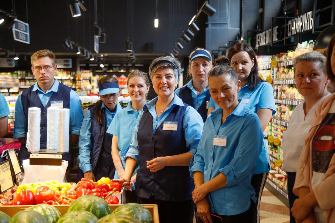 Хорошо представлены зона фруктов и овощей, хлебобулочный отдел и кулинария с продукцией собственного производства: с готовыми салатами, суши, блинчиками, запеканками и полуфабрикатами.
