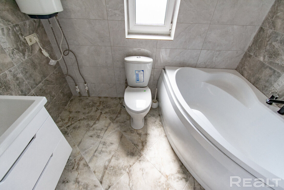 Высота потолков в доме − 2,65. Пол − керамогранит в кухне-гостиной и ванной, в комнатах − ламинат.
