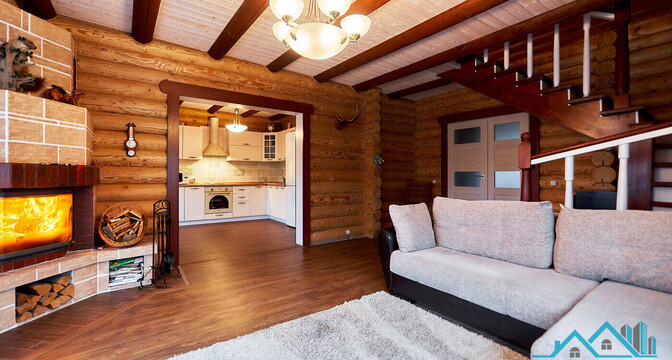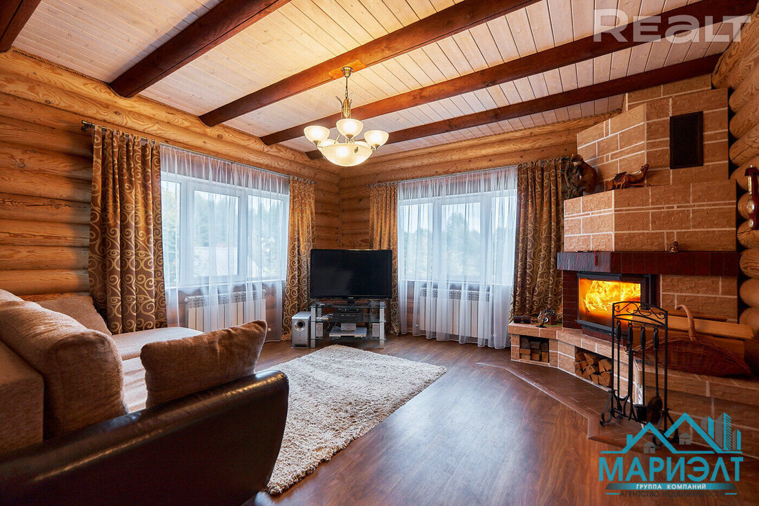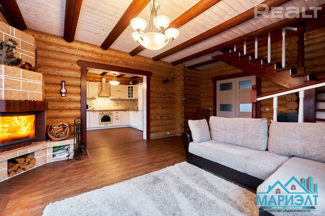 Продается дом из бруса с большим участком у реки недалеко от Минска. Посмотрите, как там уютно