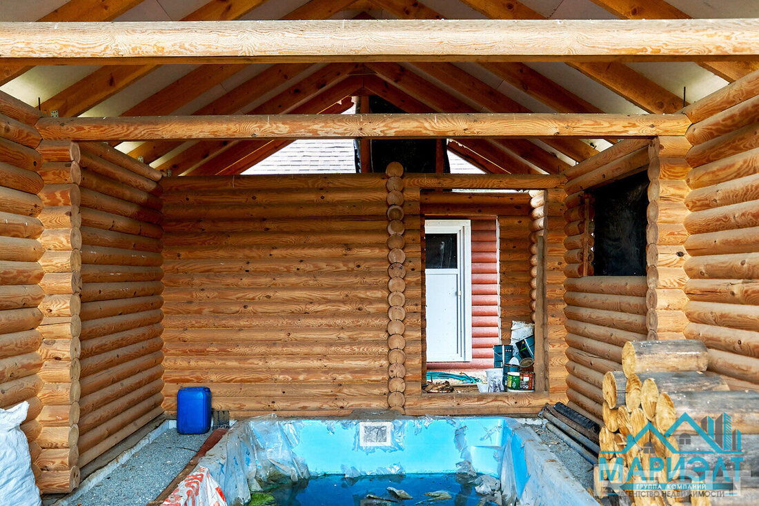 Помимо коттеджа покупатели приобретают и баню с бассейном. Чаша бассейна изготовлена из стеклопластика Koro размером 5×2, 65×1,4 м.