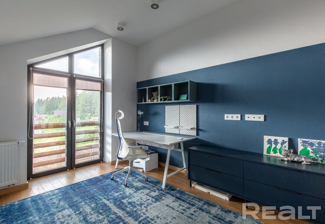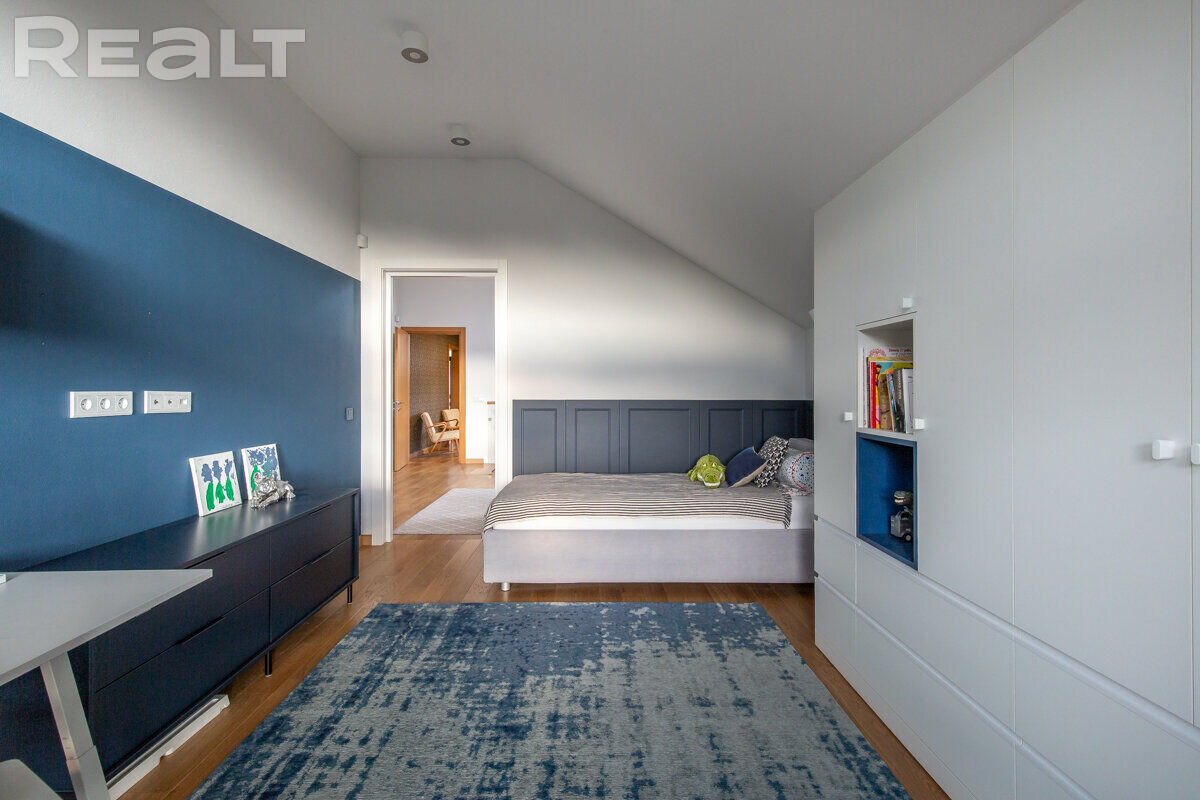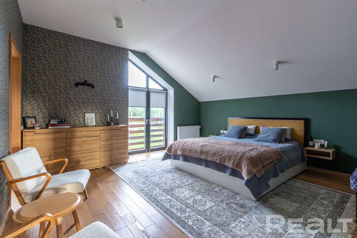 На втором этаже расположены спальня c гардеробной, а также две комнаты.