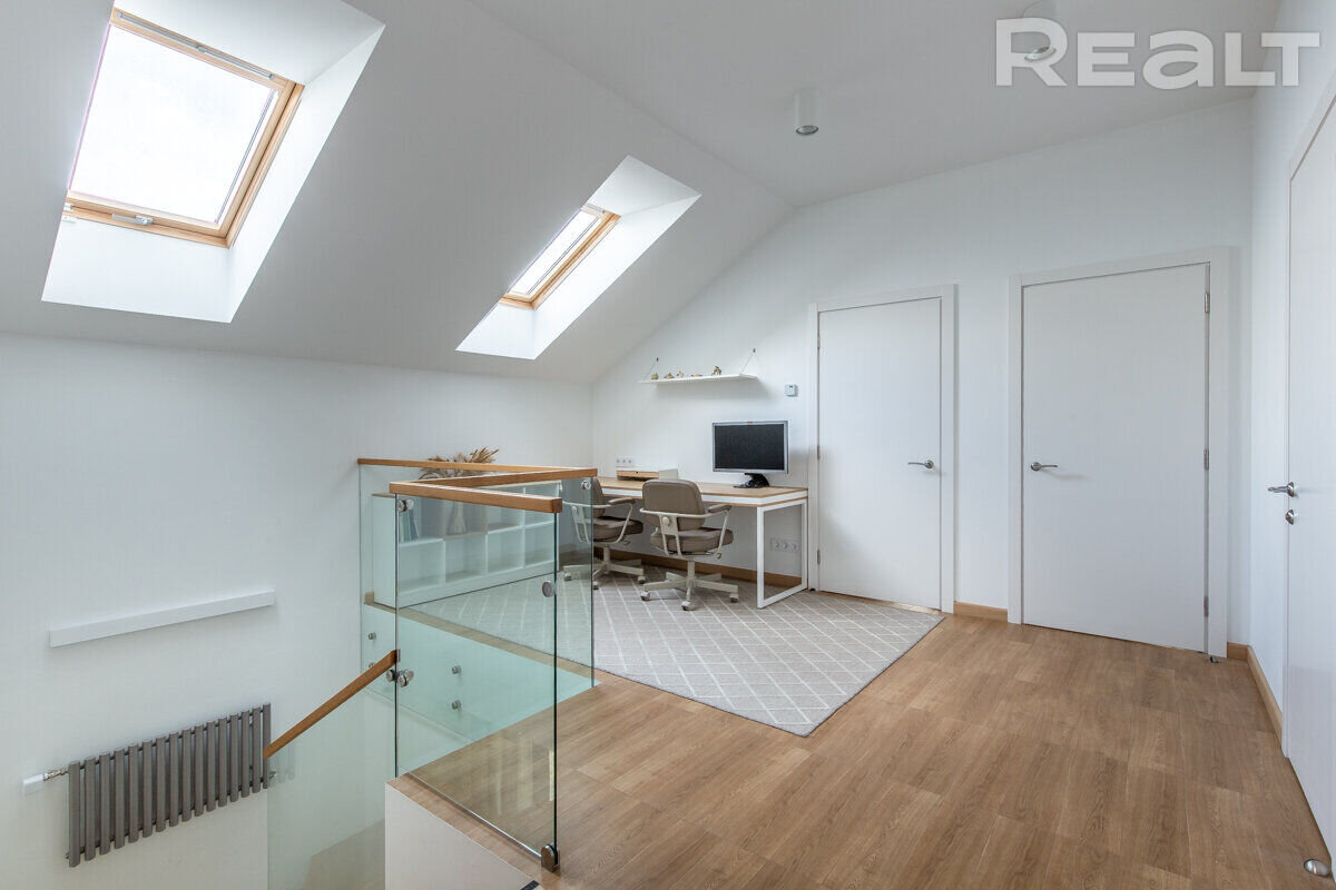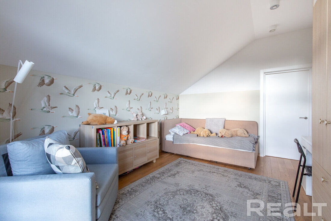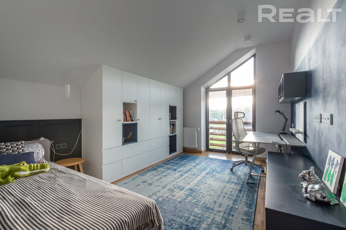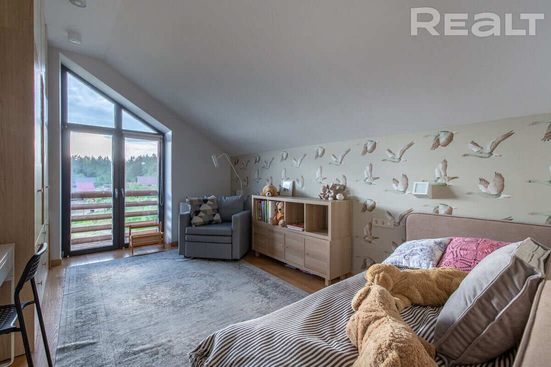 На втором этаже расположены спальня c гардеробной, а также две комнаты.