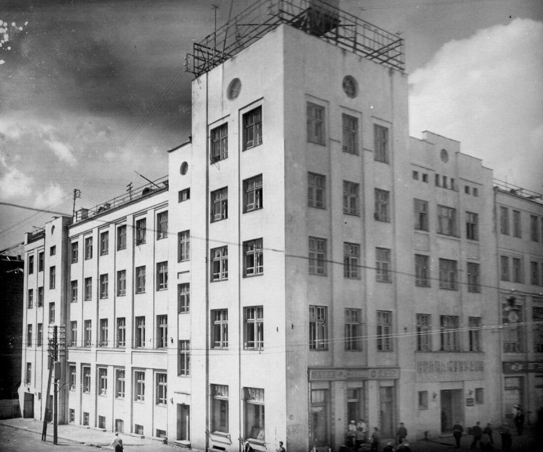 Этот дом построили еще в 30-х годах в стиле господствующего тогда конструктивизма. Он выглядел вот так: