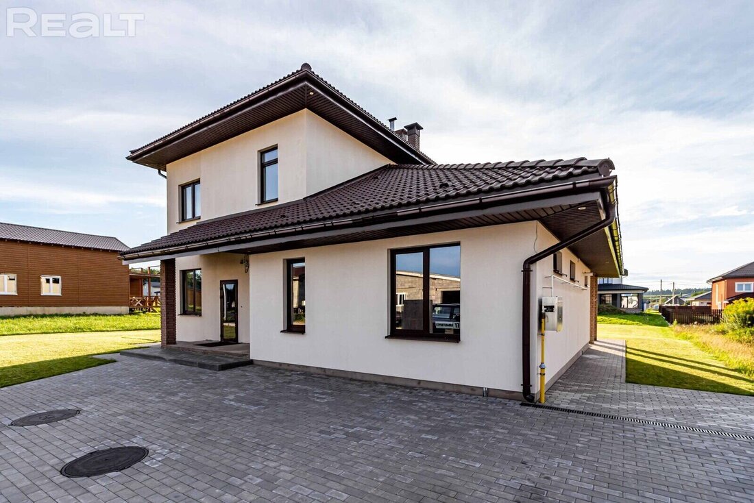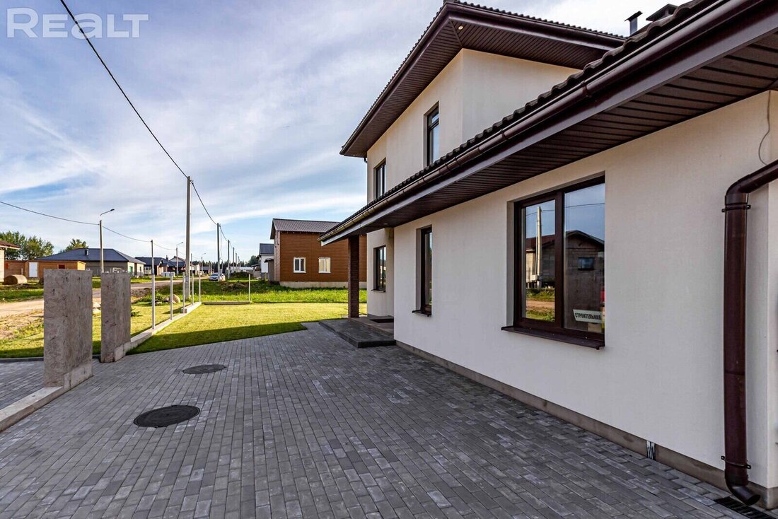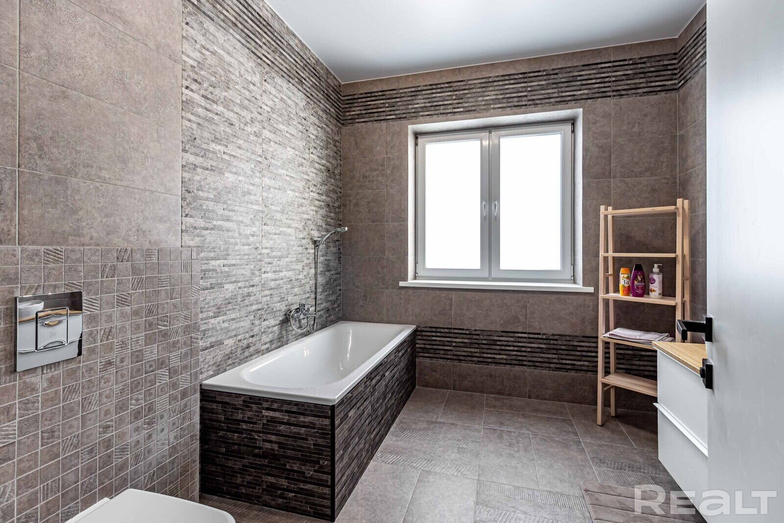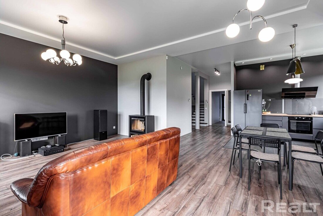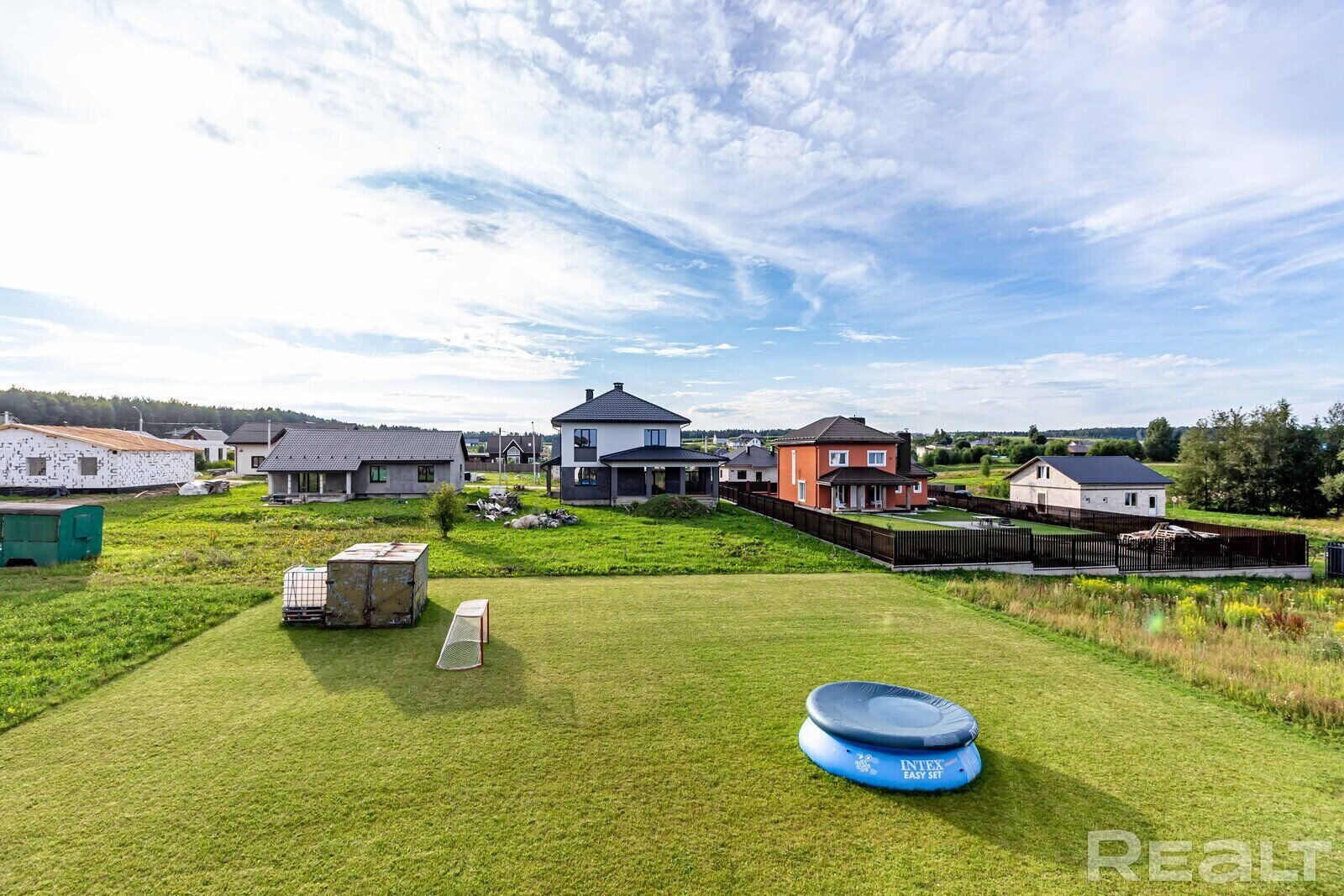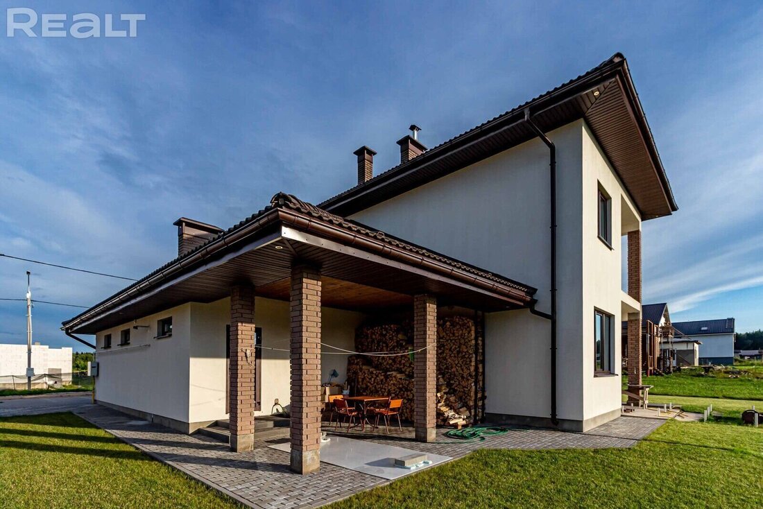 Такие дома, как этот, всегда будут в цене — спокойная архитектура, мощный фундамент, стены из керамзитобетона, черепичная крыша. Он просторный — три спальни, гостиная с камином, два санузла и и даже баня на дровах. Внутри стильный интерьер, премиальное техническое оснащение, новая мебель. И расположение отличное — современный поселок возле Минска с видом на горнолыжный курорт, живописная местность, грибные леса. Вангуем, что в продаже он долго не задержится.