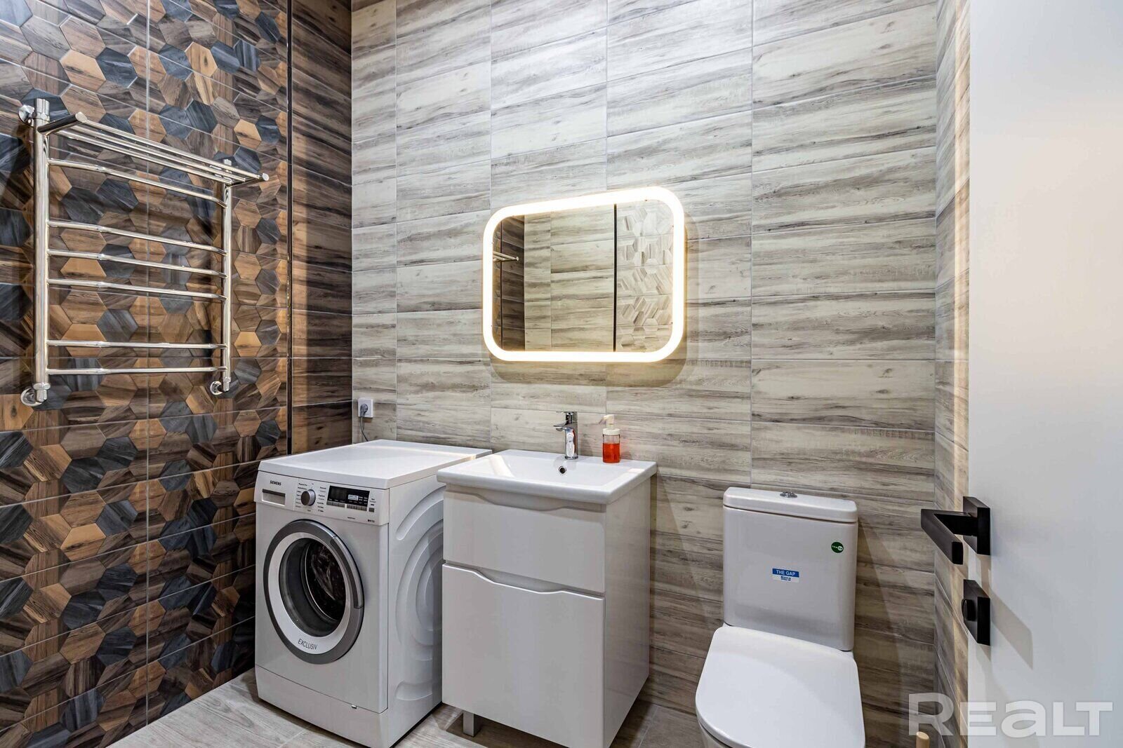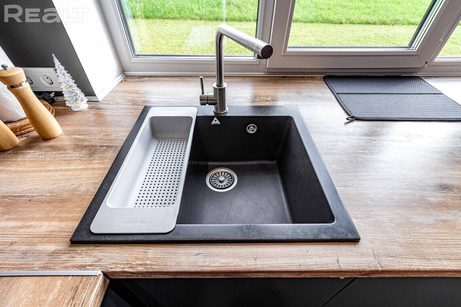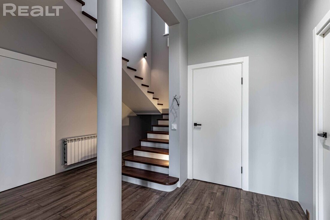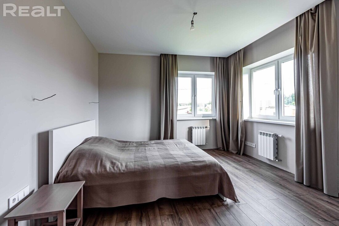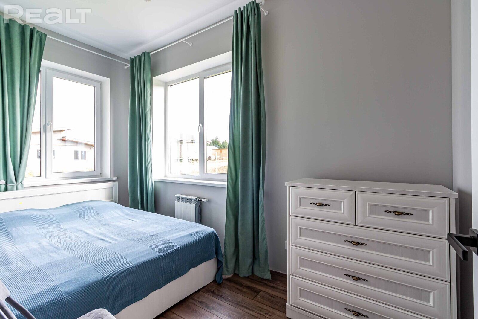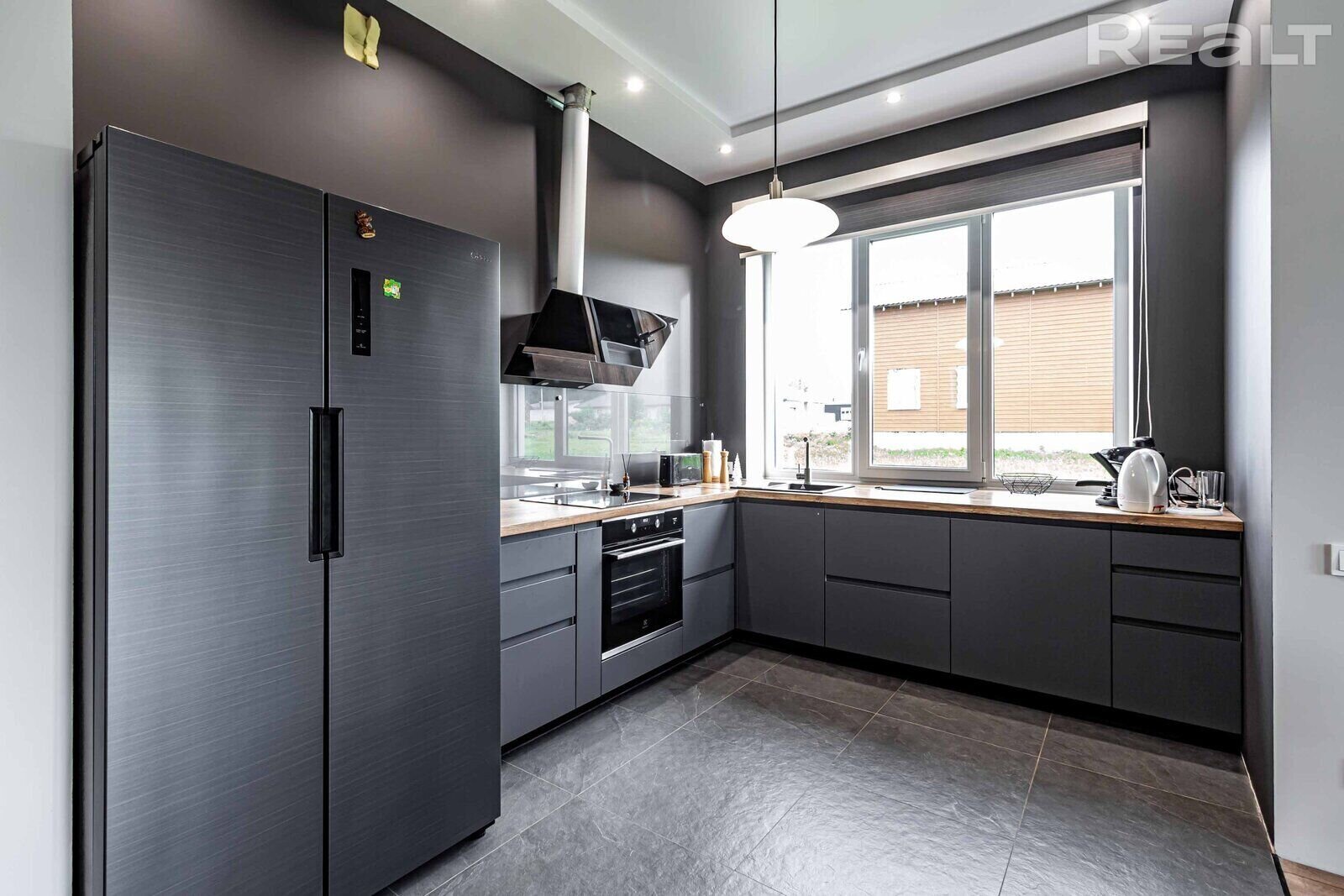 Такие дома, как этот, всегда будут в цене — спокойная архитектура, мощный фундамент, стены из керамзитобетона, черепичная крыша. Он просторный — три спальни, гостиная с камином, два санузла и и даже баня на дровах. Внутри стильный интерьер, премиальное техническое оснащение, новая мебель. И расположение отличное — современный поселок возле Минска с видом на горнолыжный курорт, живописная местность, грибные леса. Вангуем, что в продаже он долго не задержится.