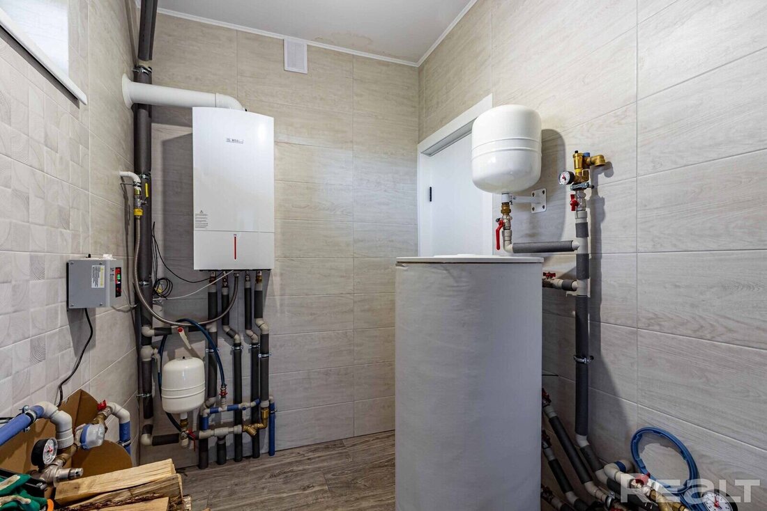 В котельной стоит отел Bosch Gaz 7000 и бойлер косвенного нагрева на 160л. Все трубы, фитинги, краны и насосы- только импортного производства. Климат в доме регулируется погодозависимой системой управления Bosch CT100 с датчиком наружной температуры воздуха и возможностью настройки разных программ отопления.