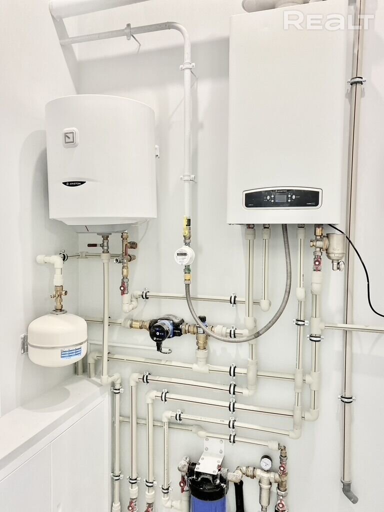 С точки зрения инженерных систем, то в первую очередь стоит сказать про систему отопления. Дом отапливается газовым котлом. Процесс автоматизирован, в каждой комнате настраивается и поддерживается свой климат. Для жарких дней имеется кондиционер.
