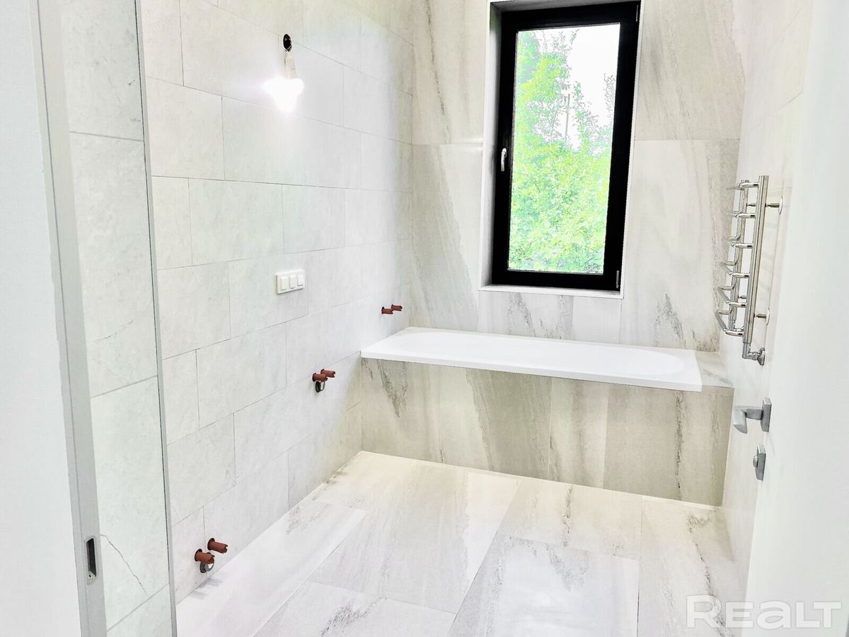 Все межкомнатные двери — скрытого монтажа (невидимки), высотой 2,6 метра. Санузлы (всего их в доме три) облицованы плиткой.