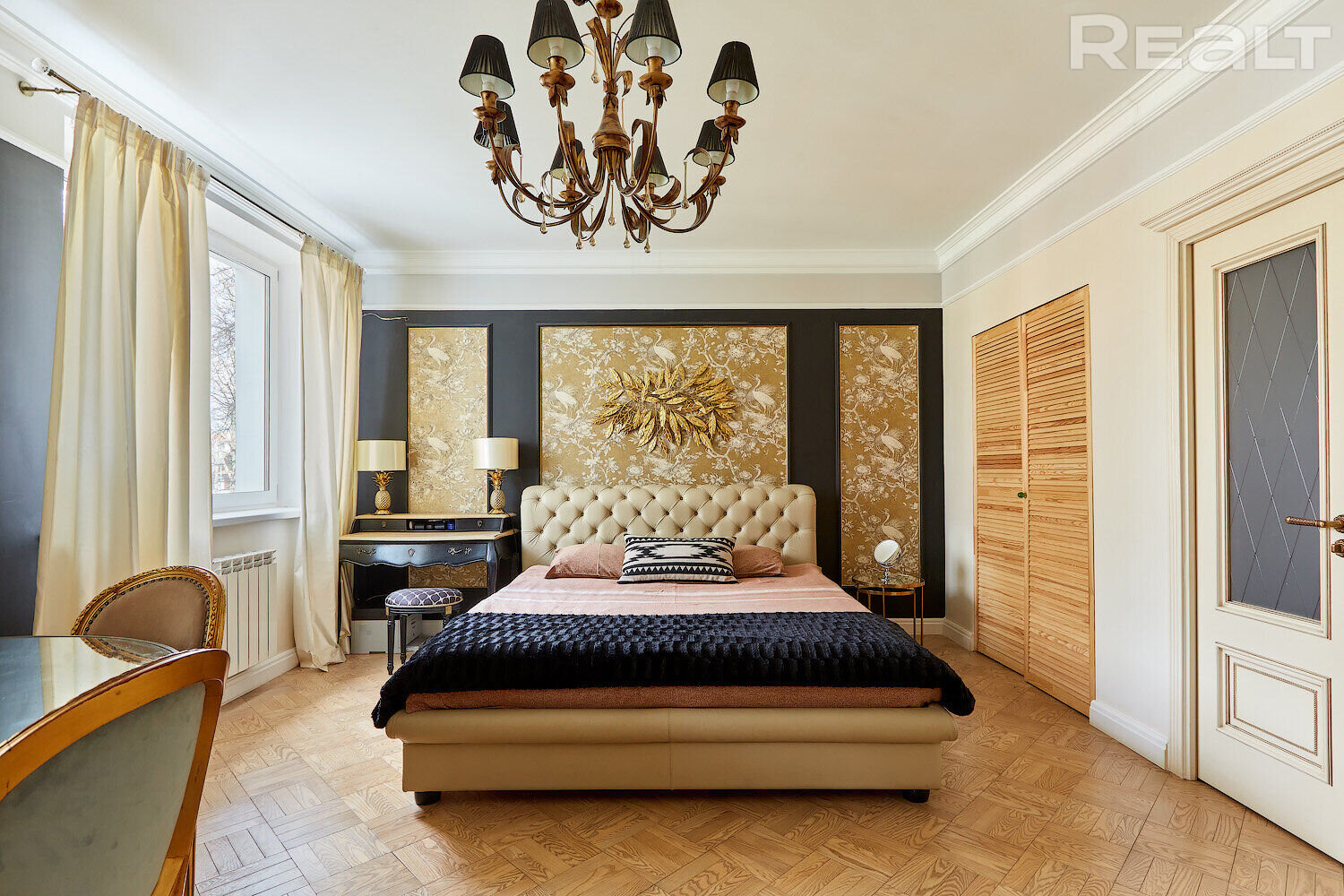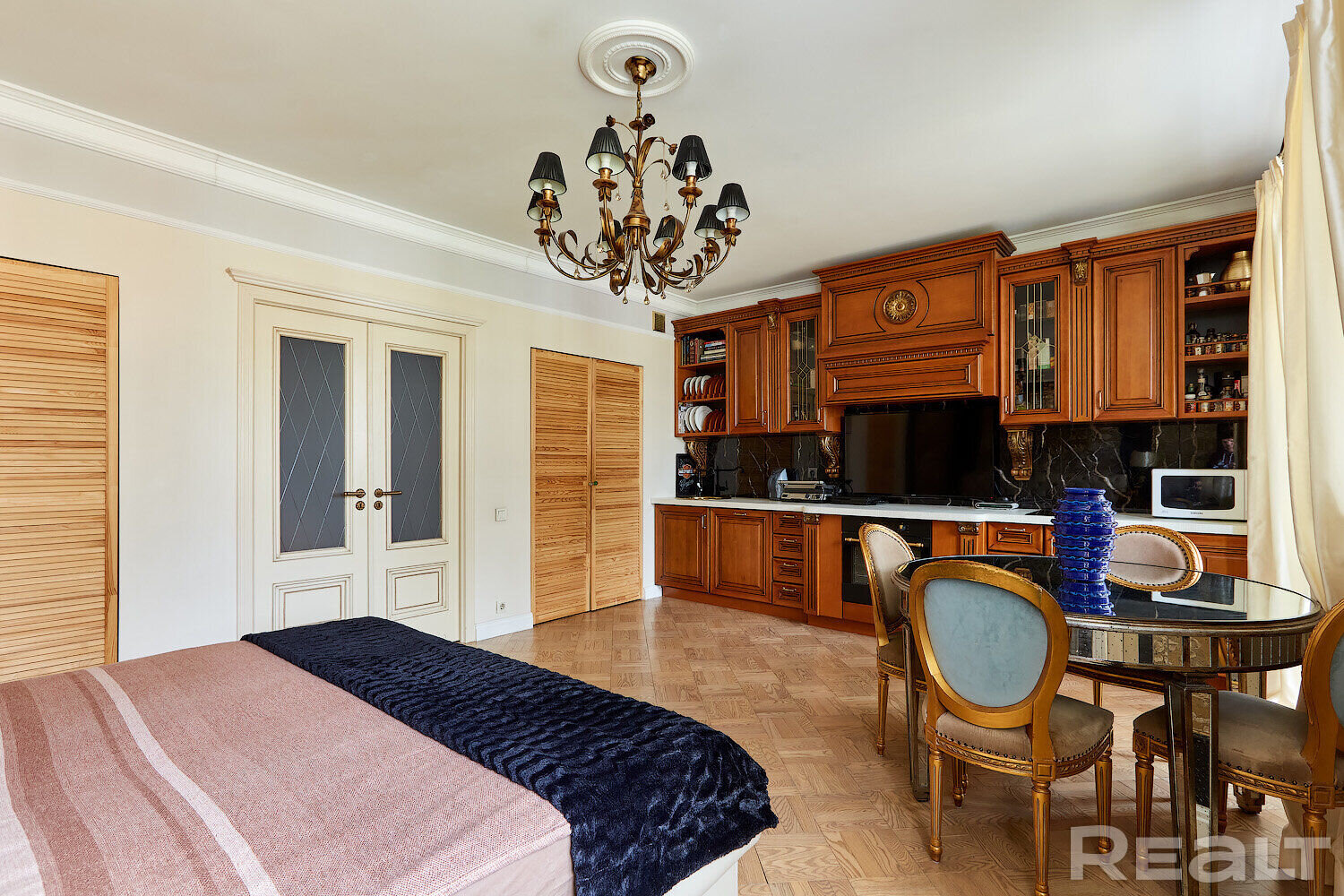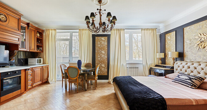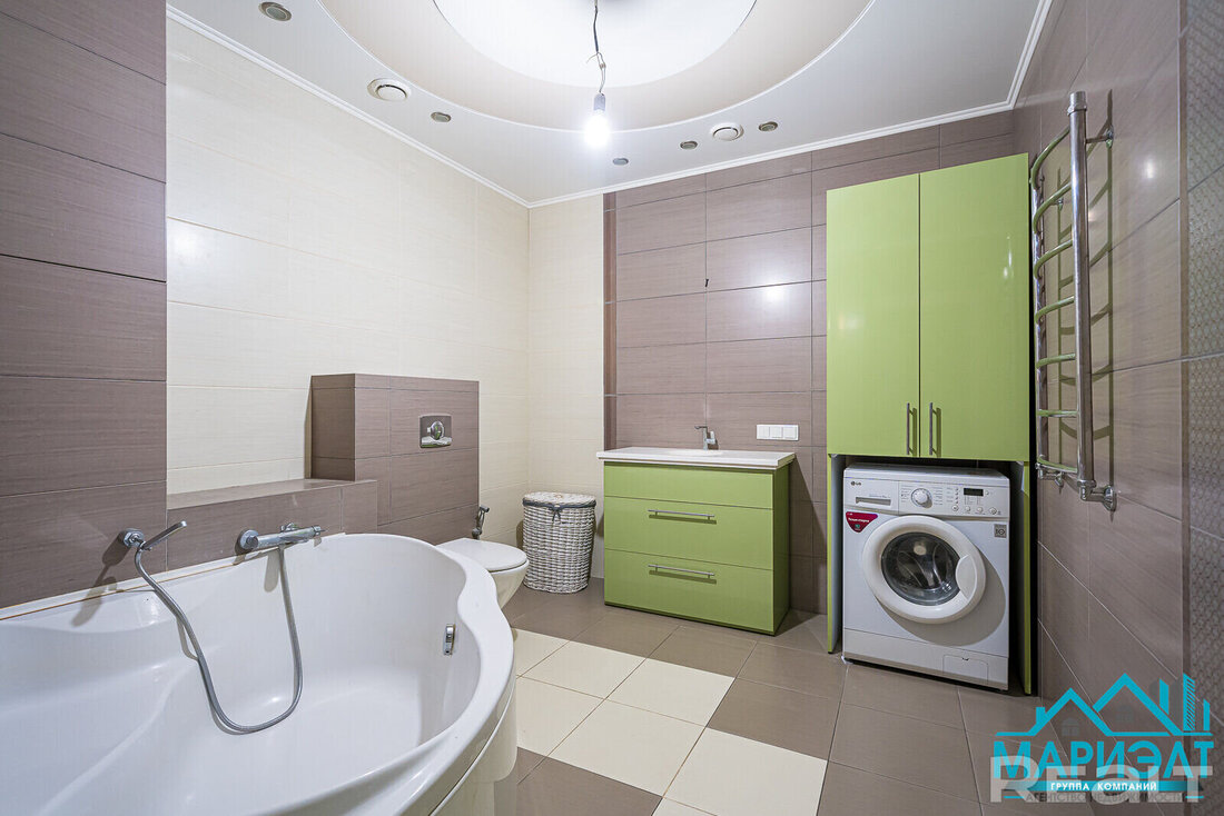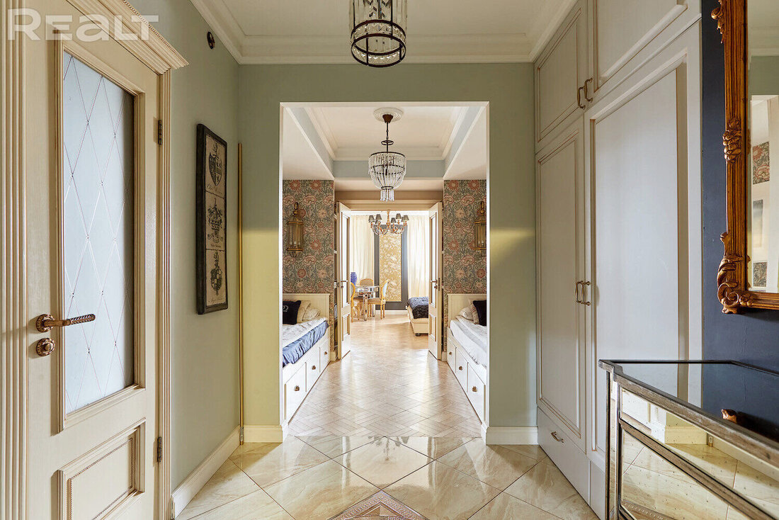 Самое дорогостоящее предложение — квартира площадью 78 «квадратов» с дизайнерским евроремонтом. В просторной двушке на седьмом этаже квартире выполнена и узаконена перепланировка. По всей квартире разведена система приточно-вытяжной вентиляции с рекуперацией тепла. Имеется инверторная мульти сплит-система кондиционирования воздуха Mitsubishi Heavy; брендовая сантехника Roca и Latorre; теплые полы в санузлах и коридоре; огромный холодильник на 490 литров, посудомоечная машина, духовой шкаф, встроенная микроволновая печь, встроенная вытяжка, варочная панель, 6-ти ступенчатая система очистки воды, бойлер на 50 литров, стиральная машина. Также тут есть собственная система видеонаблюдения с установленной IP-камерой. Стоимость — 138 тысяч долларов (1758 долларов — за метр).