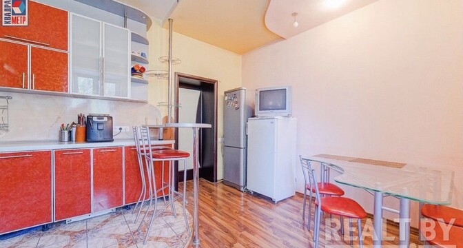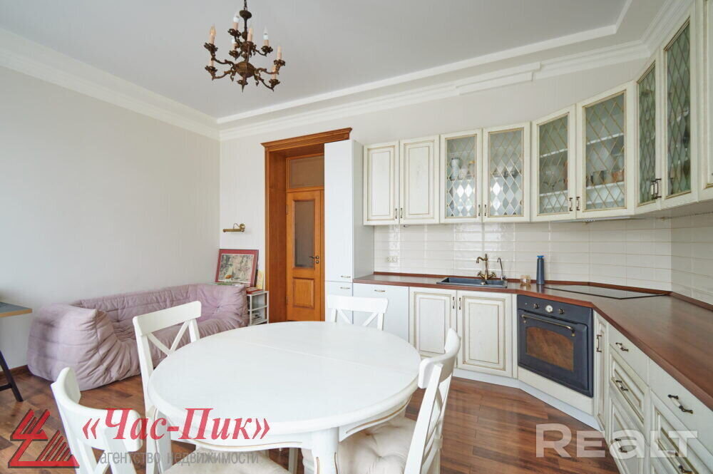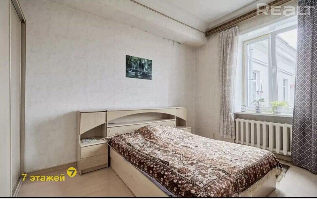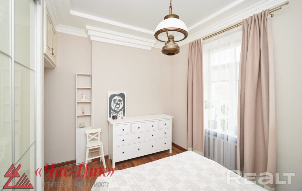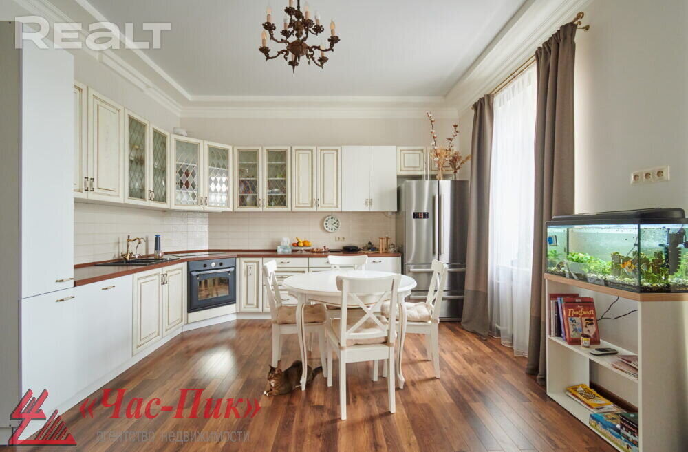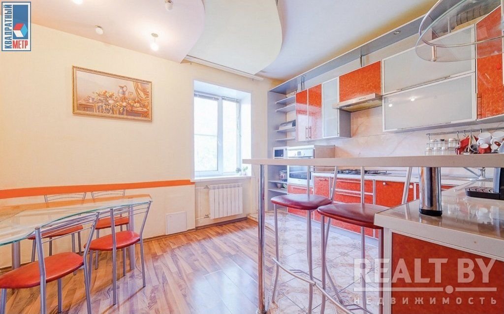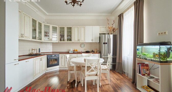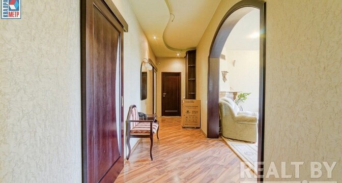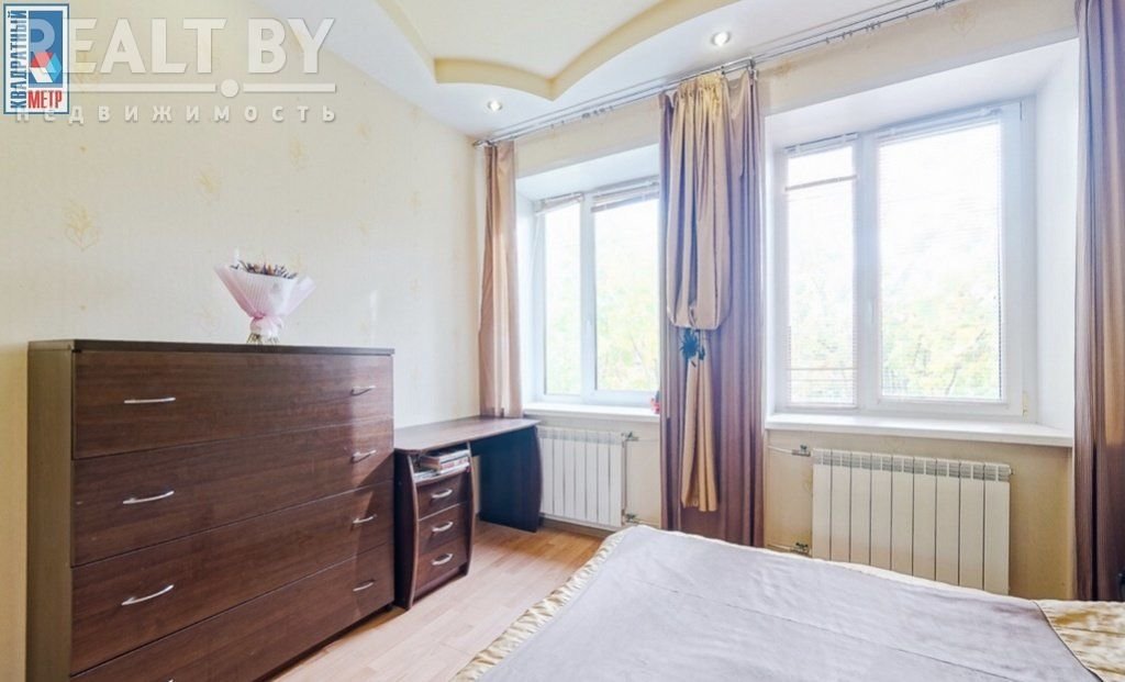Во второй части генеральского дома продается трехкомнатная квартира с хорошим ремонтом. По адресу фактически это соседний дом — проспект Независимости, 93. Квадрат в этой квартире обойдется почти в два раза дороже, чем в квартире на Независимости, 91 из нашей подборки.