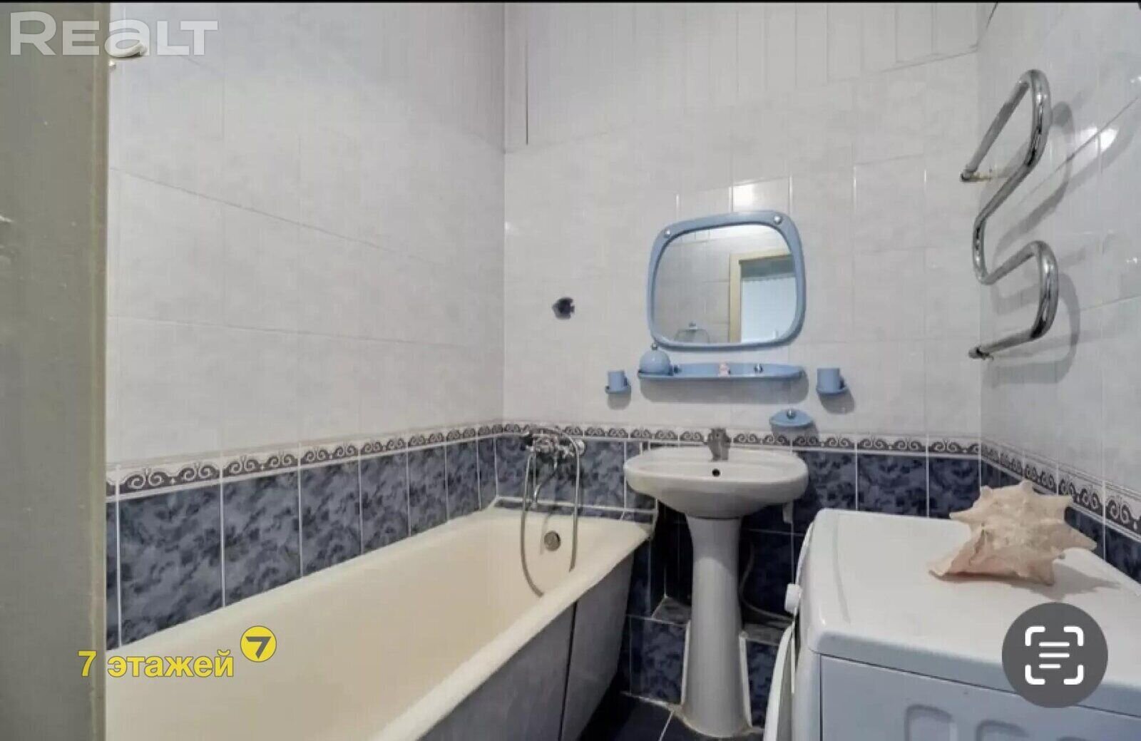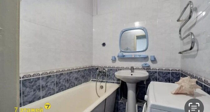 Санузел в квартире раздельный. Установлена ванна. Есть стиральная машина.