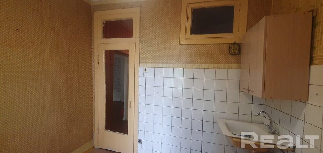 Начнем с варианта «под ремонт» — однушка в двухэтажном доме 1949 года. Находится в пяти минутах от метро «Парк Челюскинцев». Второй этаж.