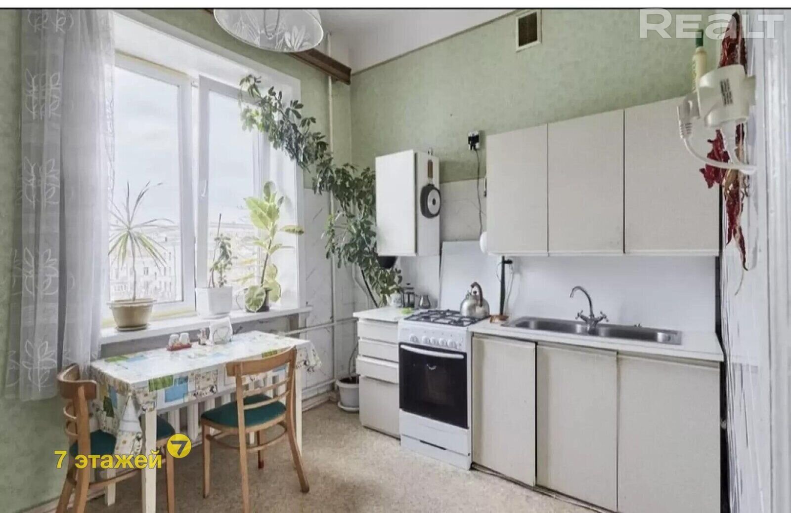 По метражу эта квартира похожа на предыдущую: 39 метров общей площади, 22 — жилой. Вот так выглядит семиметровая кухня.