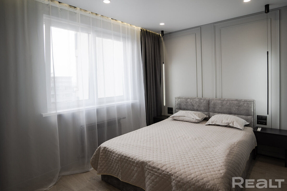 Квартира находится на 17 этаже двадцатиэтажного монолитного дома по адресу Нарочанская, 4. Его возвели в 2020-м году. Общая площадь квартиры — 72 квадрата.